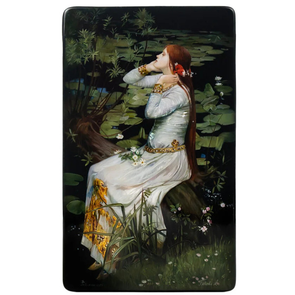 Отличительная черта Федоскинской миниатюры — реализм, достигнутый с помощью сложной многослойной масляной живописи. На эту живописную базу наносятся нежные отблески сусального золота, серебра, перламутра, создавая эффект свечения и глубины. Каждый штрих становится частью величественной композиции, оживающей в плавных переходах света и тени, подчеркивающих тончайшие детали.