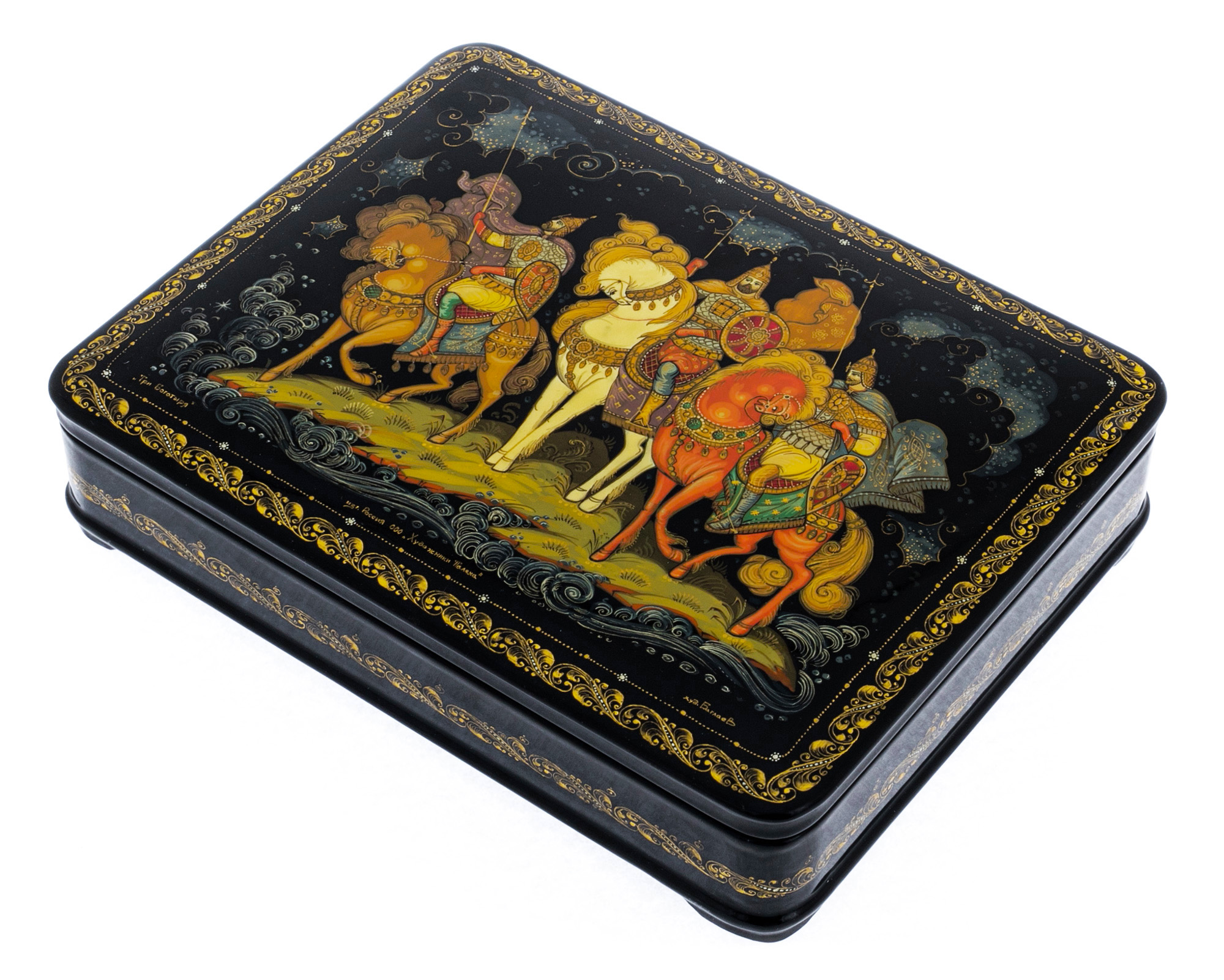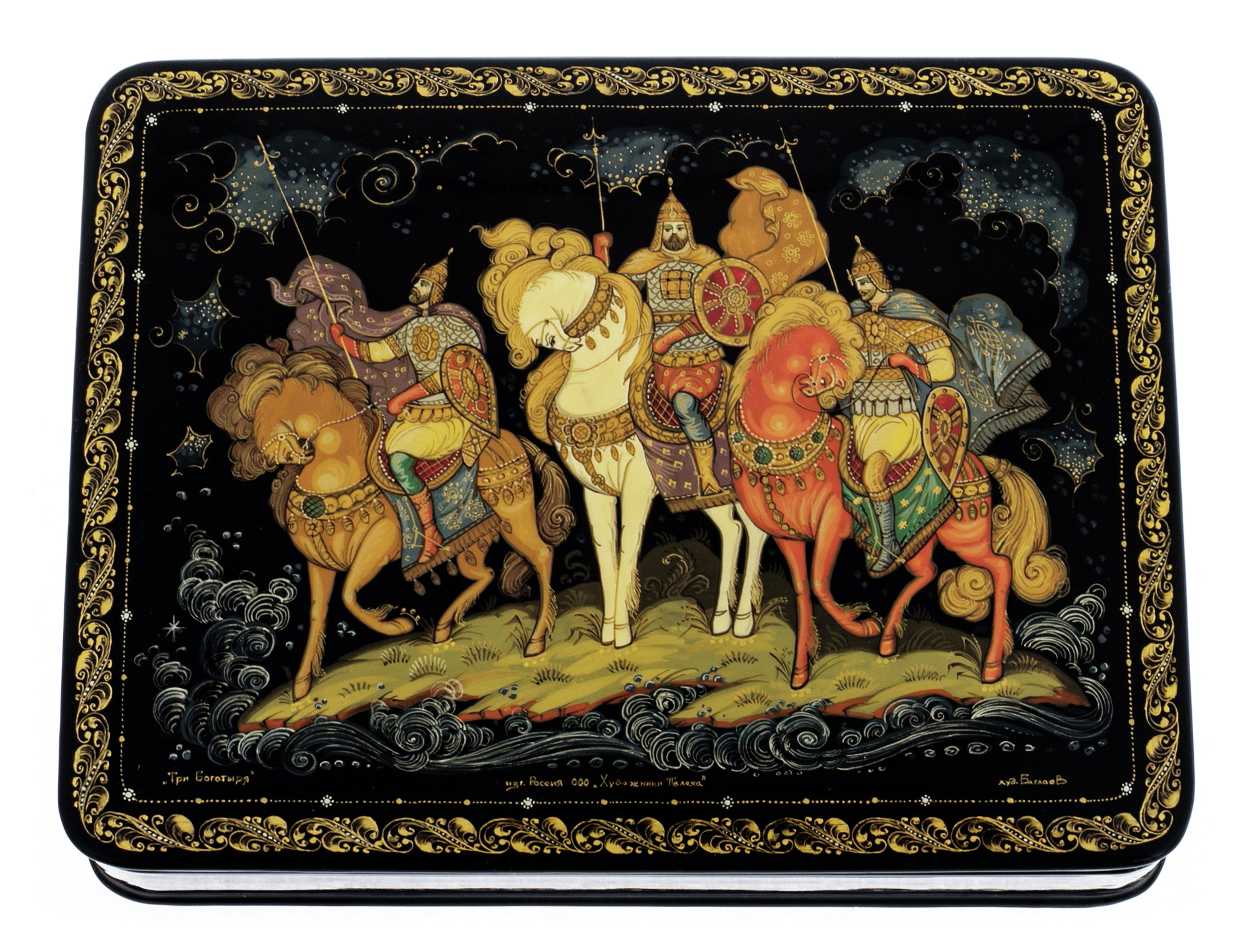Шкатулка "Три богатыря" Палех