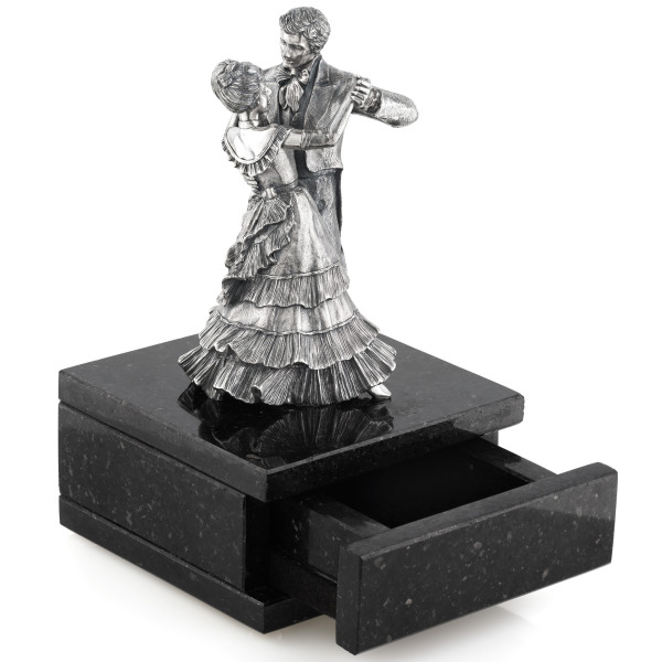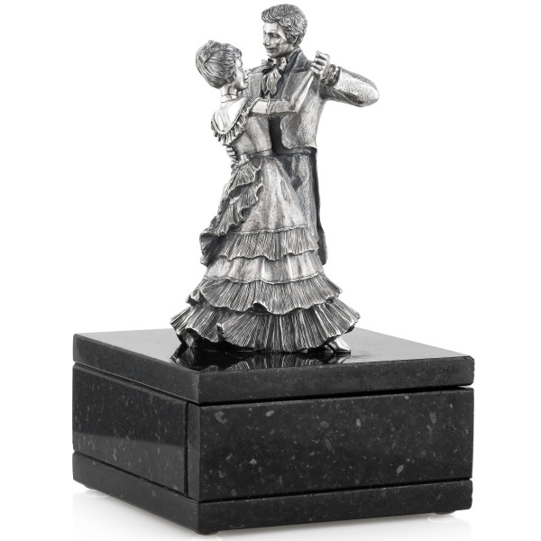 Великолепно проработанная скульптура пары кружащейся в танце на шкатулке символизирует момент встречи и вспышки первой влюбленности двух молодых людей. Встречи, которая затем переросла в крепкий семейный союз. Шкатулка идеально подойдет как подарок на годовщину свадьбы или просто близкому человеку.