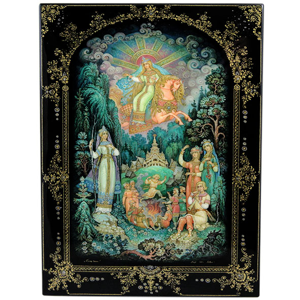 Материалы:папье-маше, темперные краски, сусальное золото, льняное масло, лак.