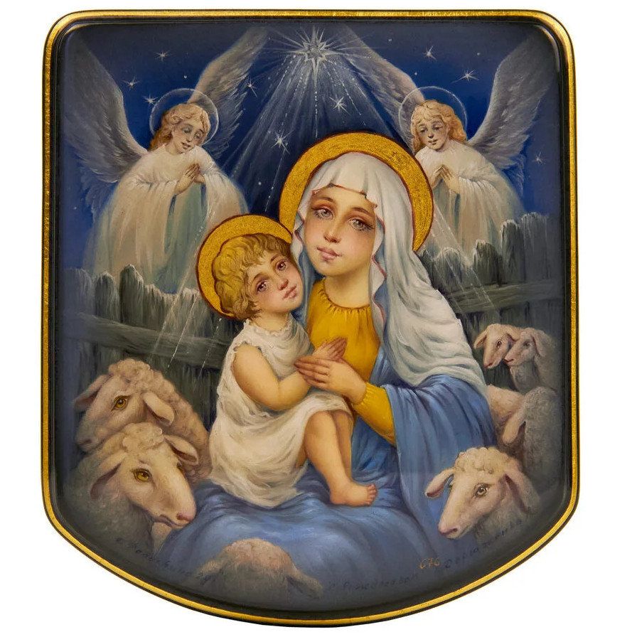 Шкатулка "Рождество" Дерюженко, Федоскино