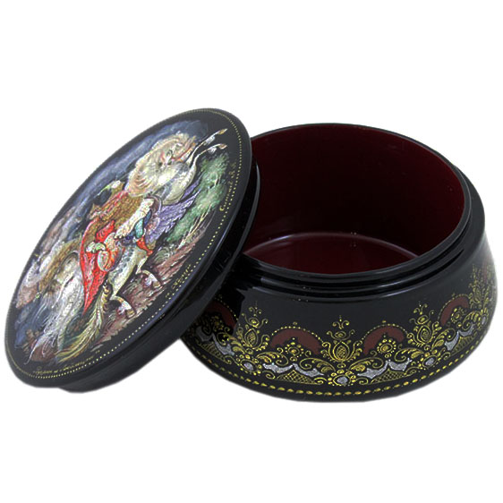 Материалы:папье-маше, темперные краски, сусальное золото, льняное масло, лак.