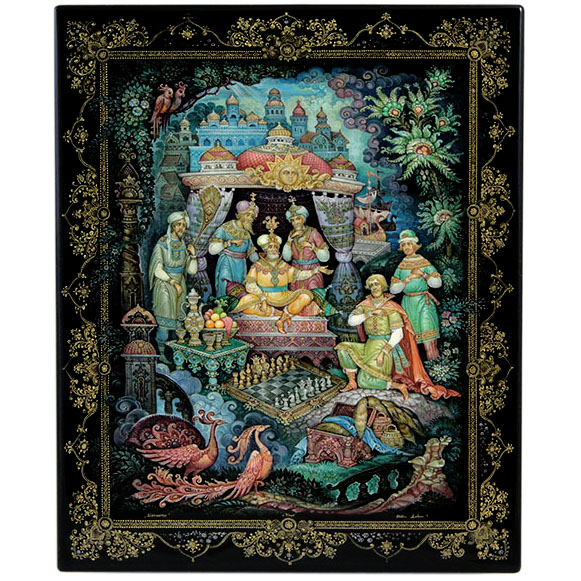 Материалы:папье-маше, темперные краски, сусальное золото, льняное масло, лак.