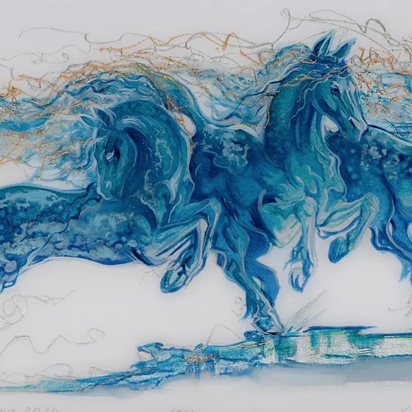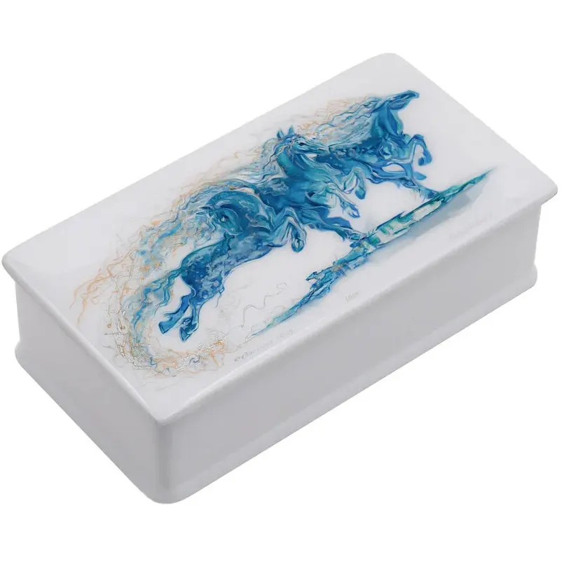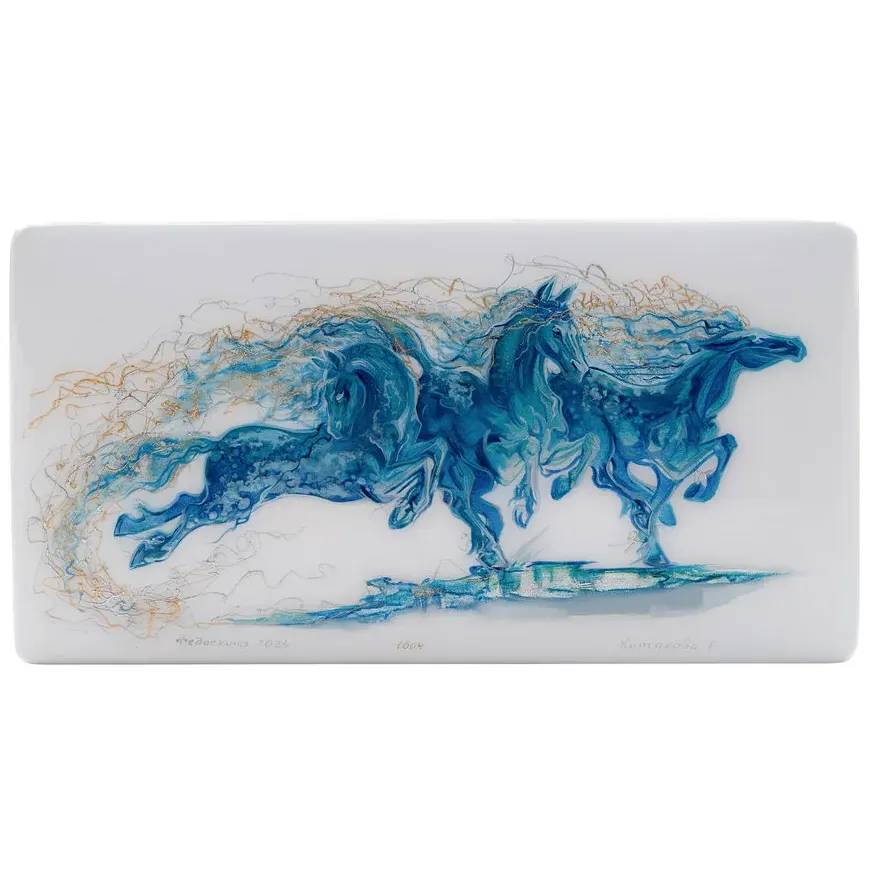 Шкатулка "Синие кони" Корсакова, Федоскино