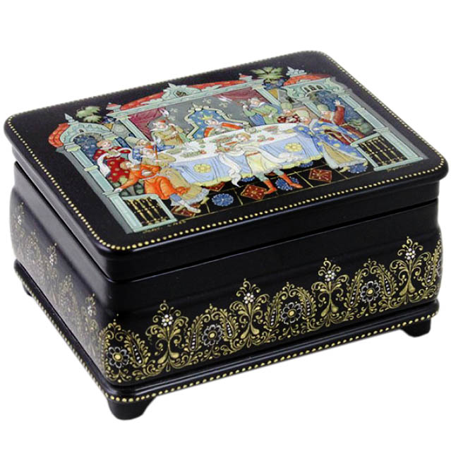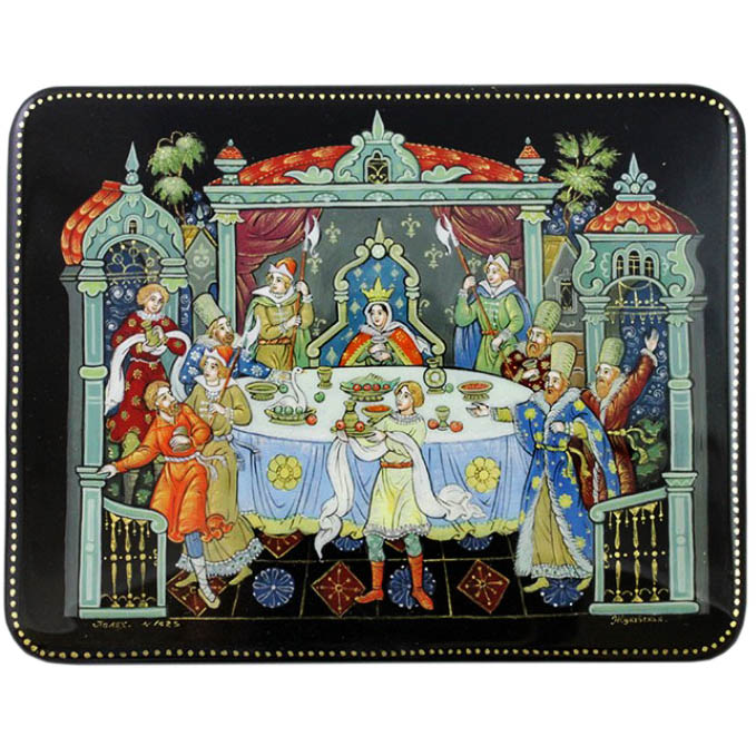 Шкатулка "Сказка о золотой рыбке" Палех