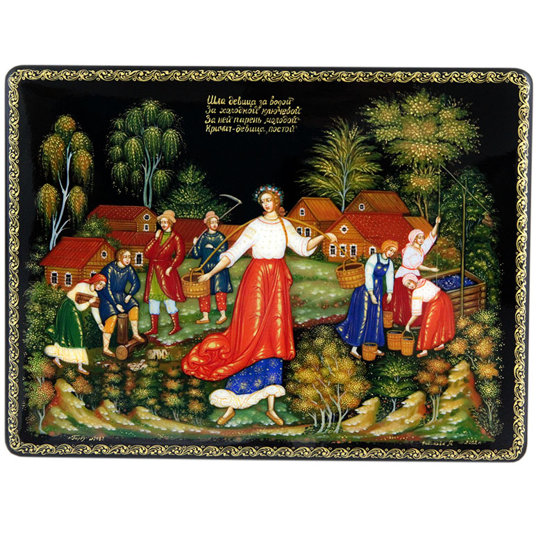Шкатулка "Шла девица за водой" Палех
