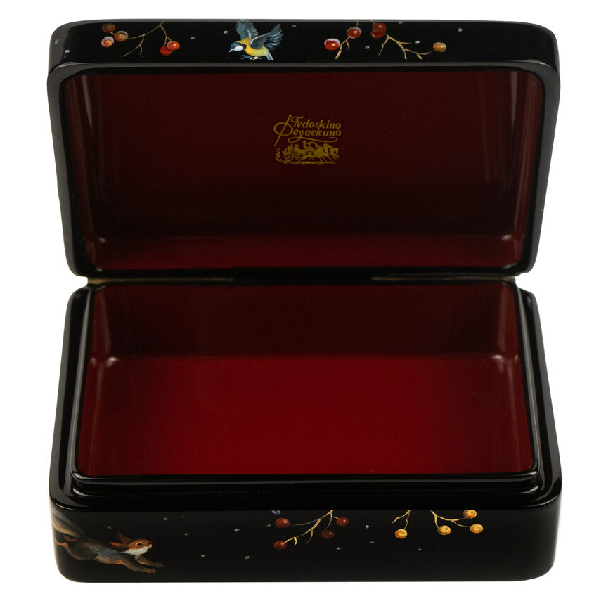 Каждая шкатулка уникальна, проходит контроль качества Художественного совета Фабрики Федоскино, имеет индивидуальный номер и фирменный знак.