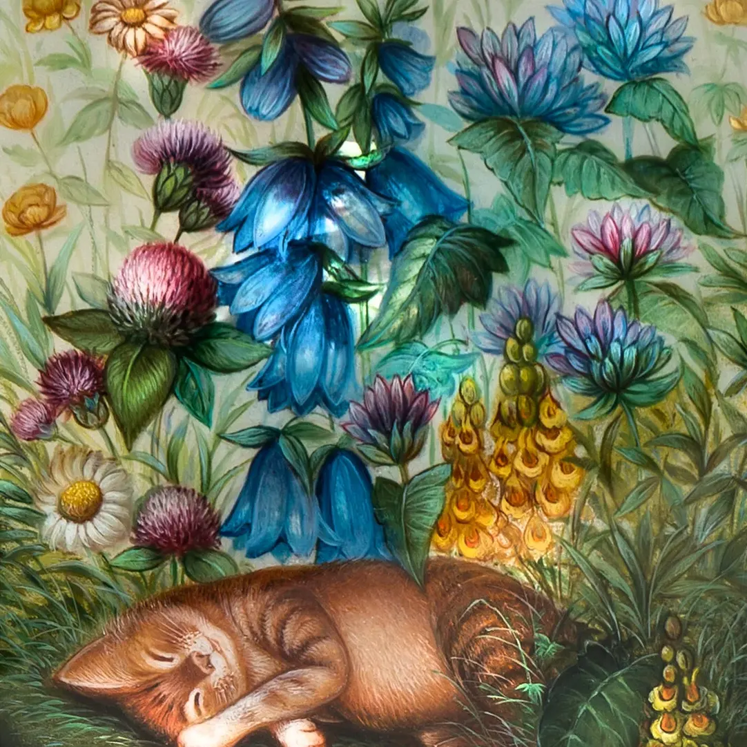 Отличительная черта Федоскинской миниатюры — реализм, достигнутый с помощью сложной многослойной масляной живописи. На эту живописную базу наносятся нежные отблески сусального золота, серебра, перламутра, создавая эффект свечения и глубины. Каждый штрих становится частью величественной композиции, оживающей в плавных переходах света и тени, подчеркивающих тончайшие детали.