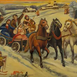 Шкатулка "Свадебная тройка" Белова, Палех
