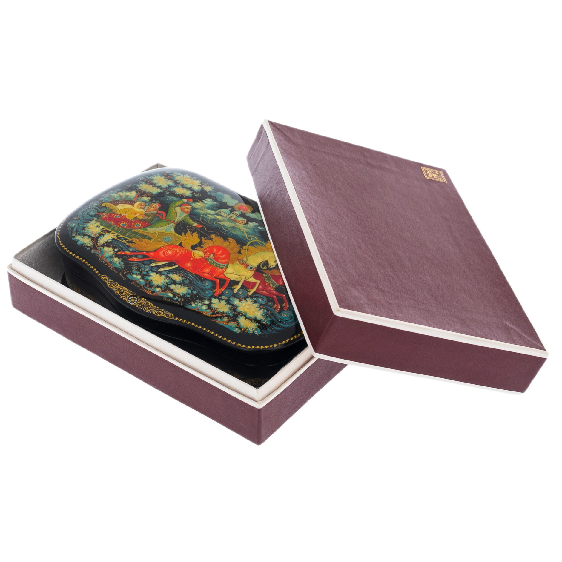 Каждая шкатулка покрыта восемью слоями масляного лака, что обеспечивает ей долговечность и блеск, отражающий свет и создающий игру оттенков. Упакованная в элегантный футляр, она становится идеальным подарком для ценителей прекрасного, желающих окружить себя искусством и вдохновением.