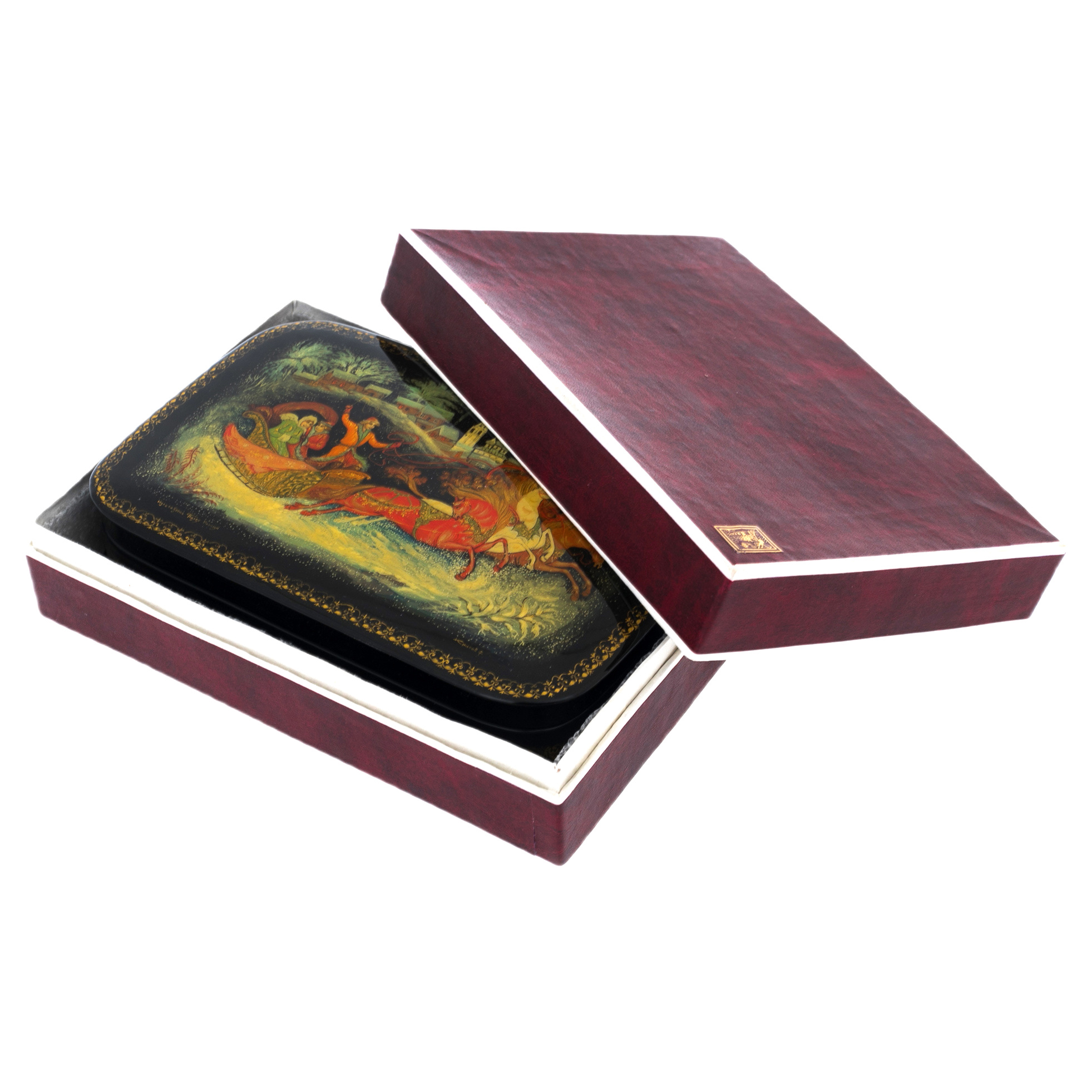 Каждая шкатулка покрыта восемью слоями масляного лака, что обеспечивает ей долговечность и блеск, отражающий свет и создающий игру оттенков. Упакованная в элегантный футляр, она становится идеальным подарком для ценителей прекрасного, желающих окружить себя искусством и вдохновением.