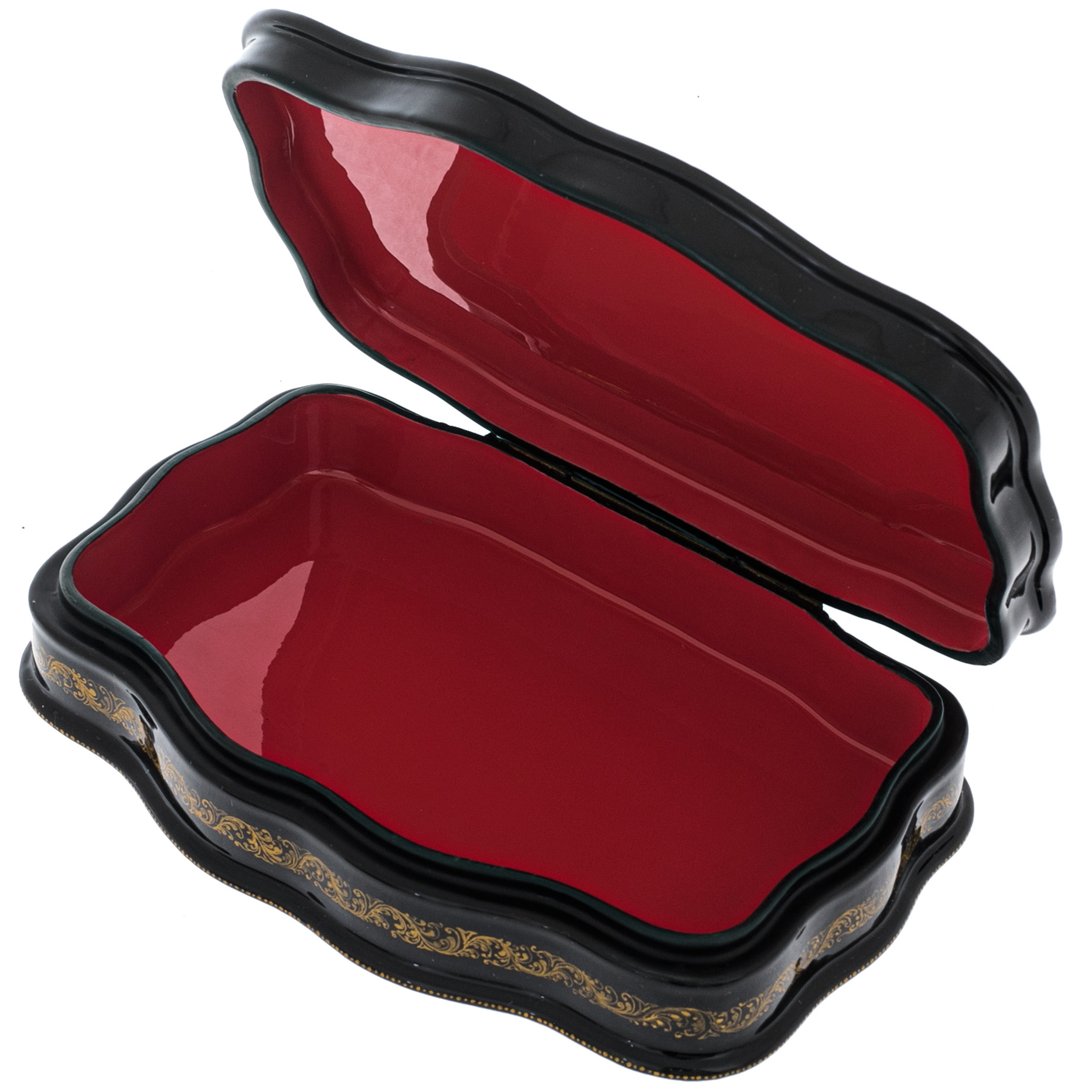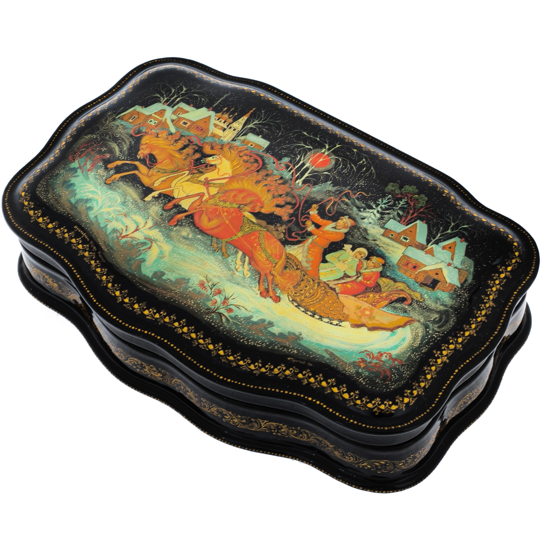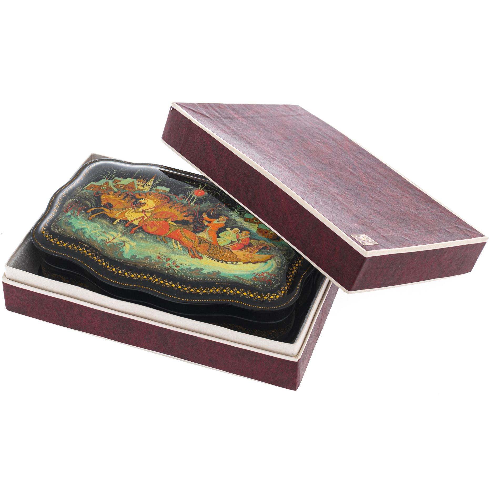 Изделие лаковой миниатюрной живописи является подлинным произведением декоративно-прикладного искусства, выполнено вручную в художественных и технологических традициях палехского старинного иконописного промысла, бытовавшего в данной местности с XVI века, и лаковой темперной миниатюрной живописи на папье-маше начала ХХ века.