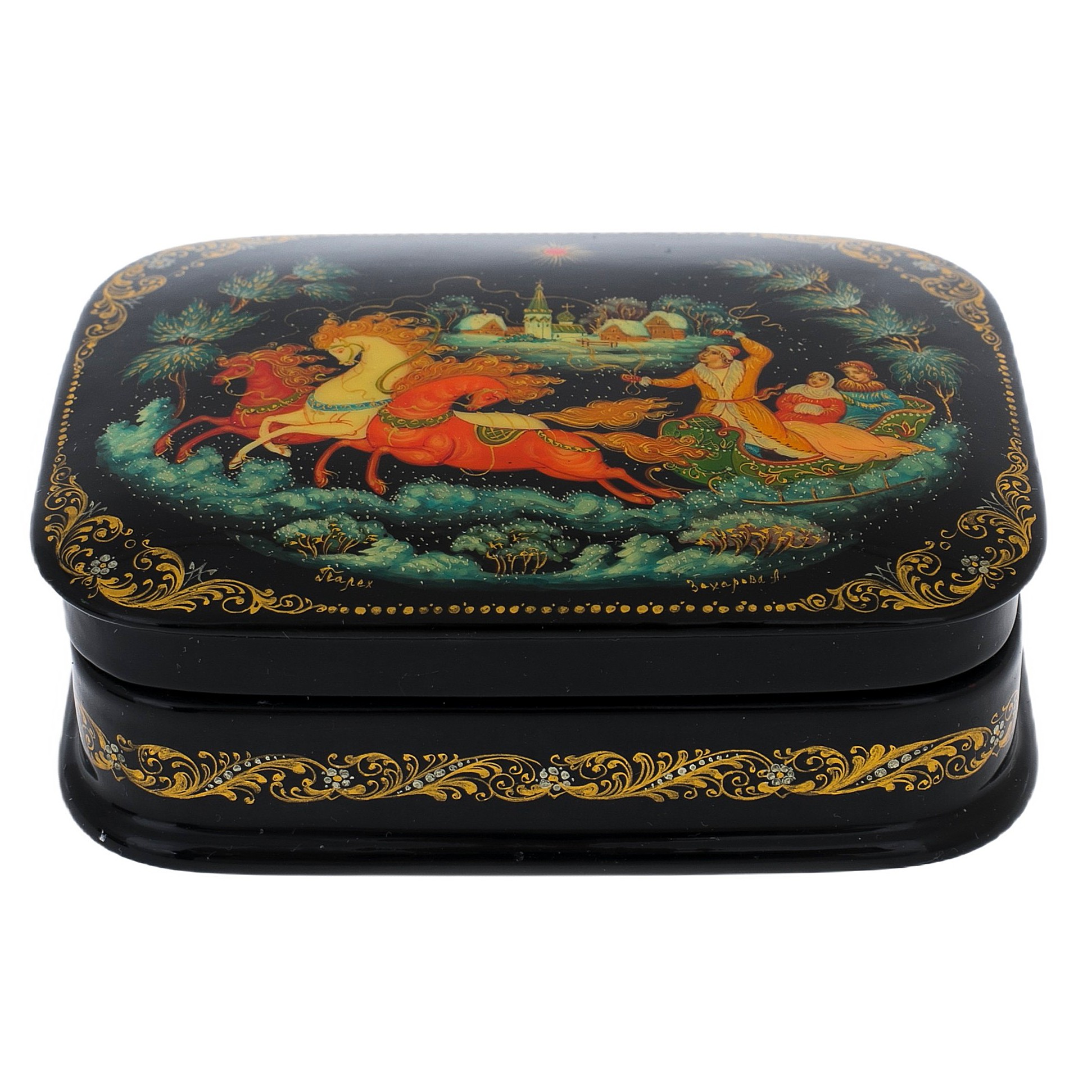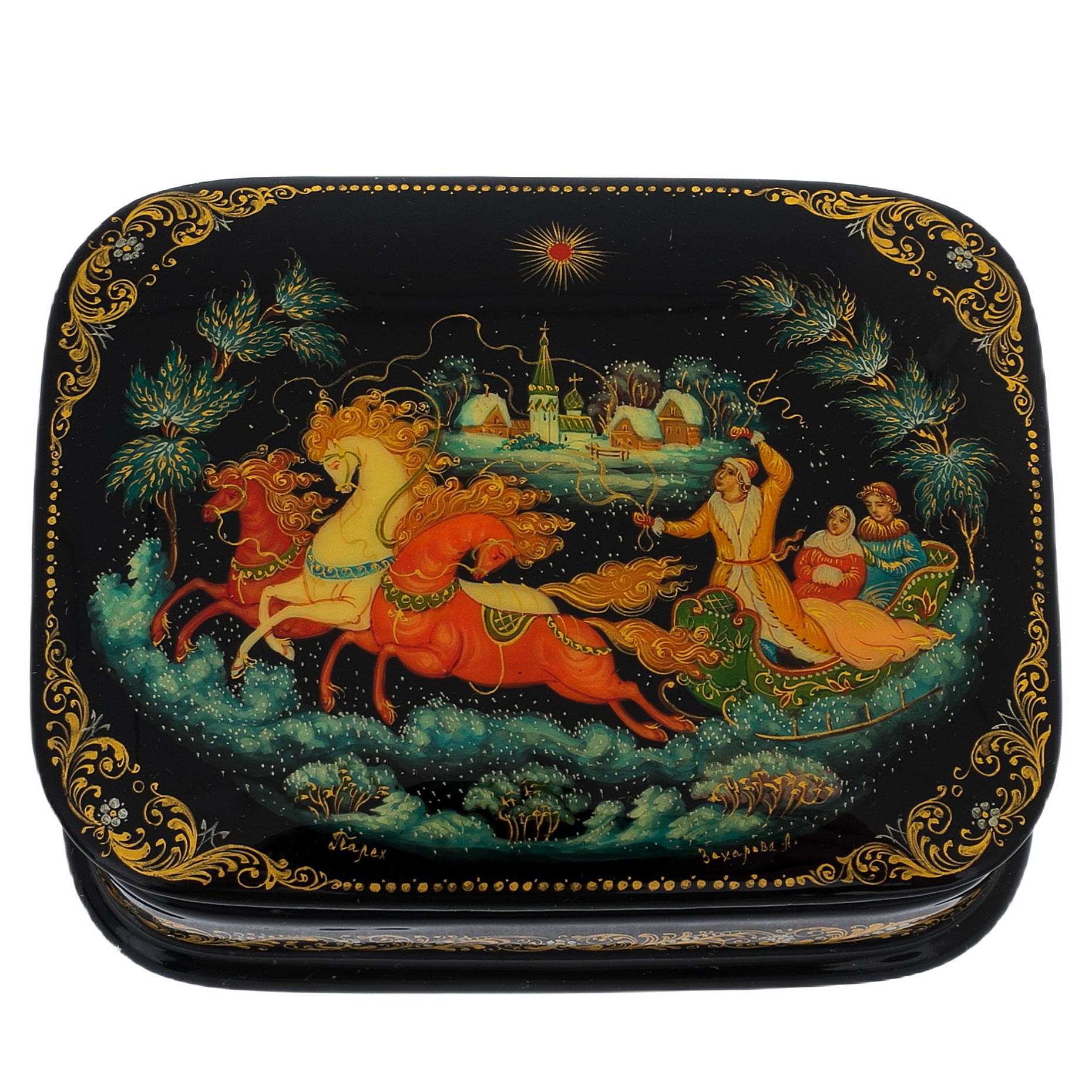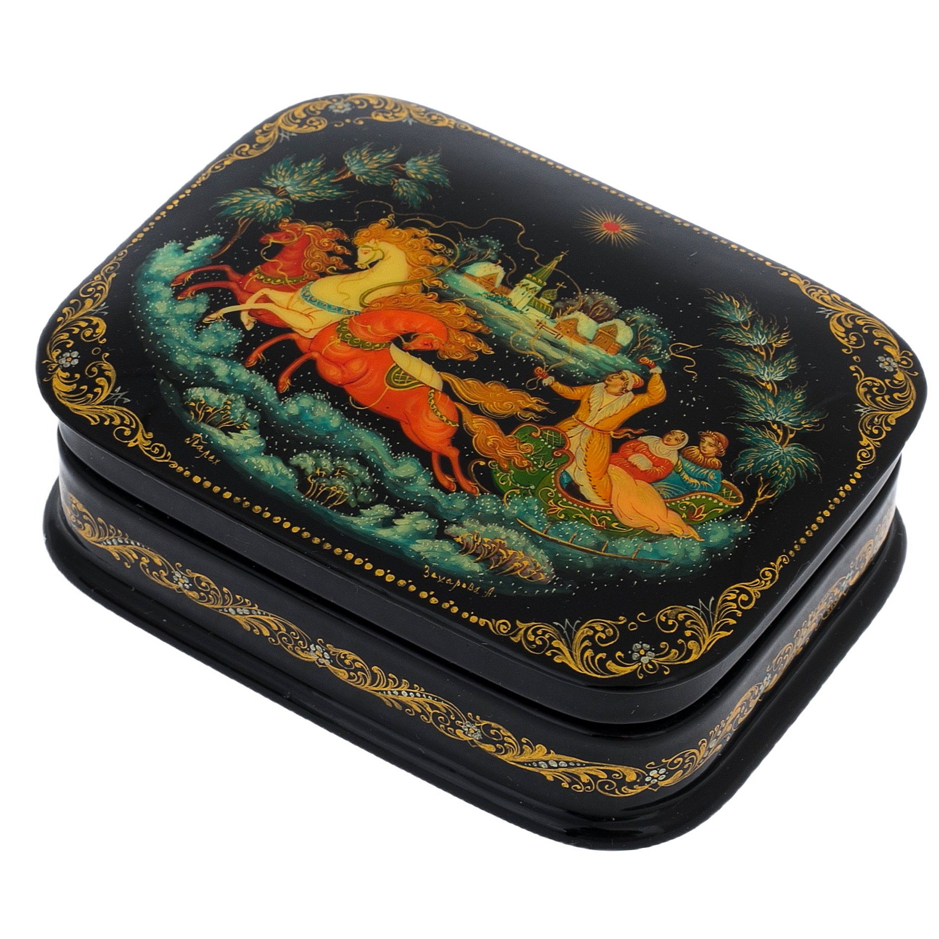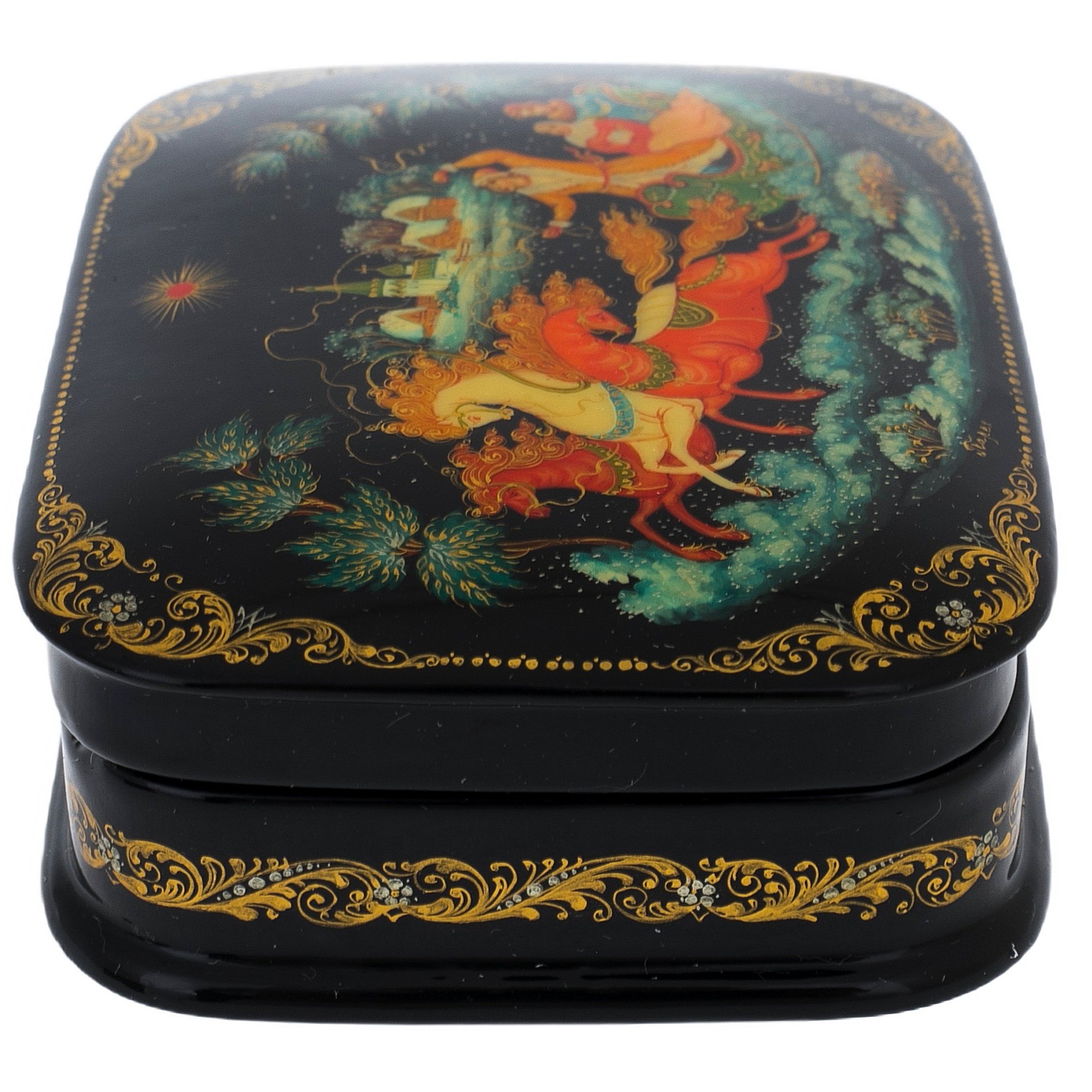 Изделие лаковой миниатюрной живописи является подлинным произведением декоративно-прикладного искусства, выполнено вручную в художественных и технологических традициях палехского старинного иконописного промысла, бытовавшего в данной местности с XVI века, и лаковой темперной миниатюрной живописи на папье-маше начала ХХ века.
