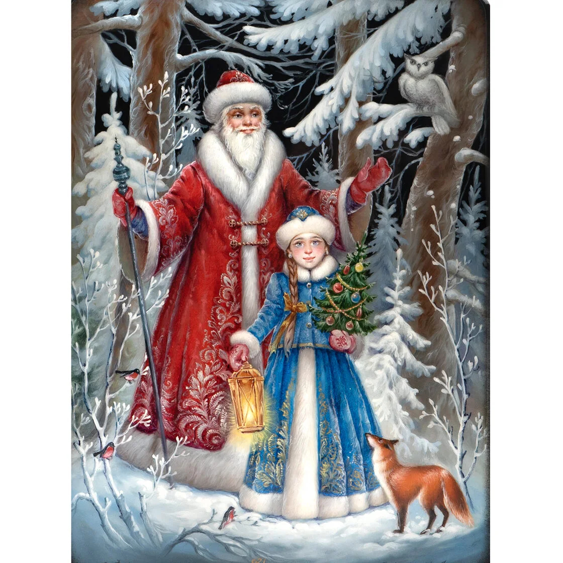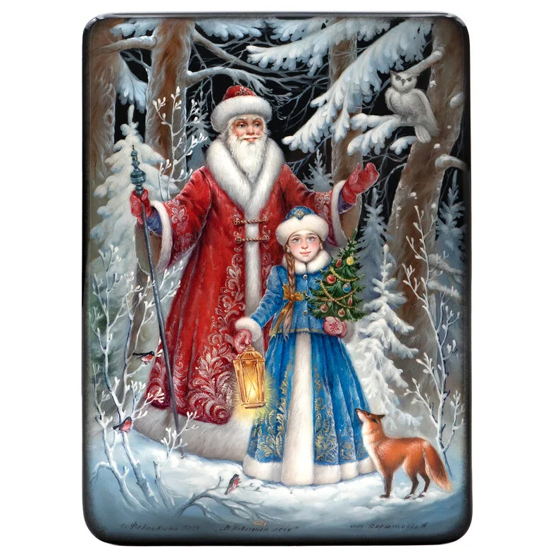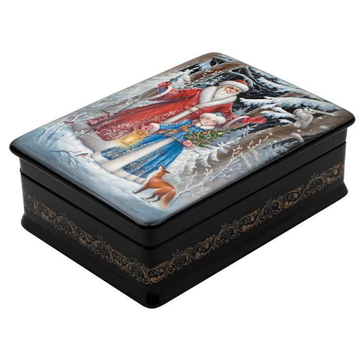 Шкатулка "В новогоднем лесу" Дерюженко, Федоскино