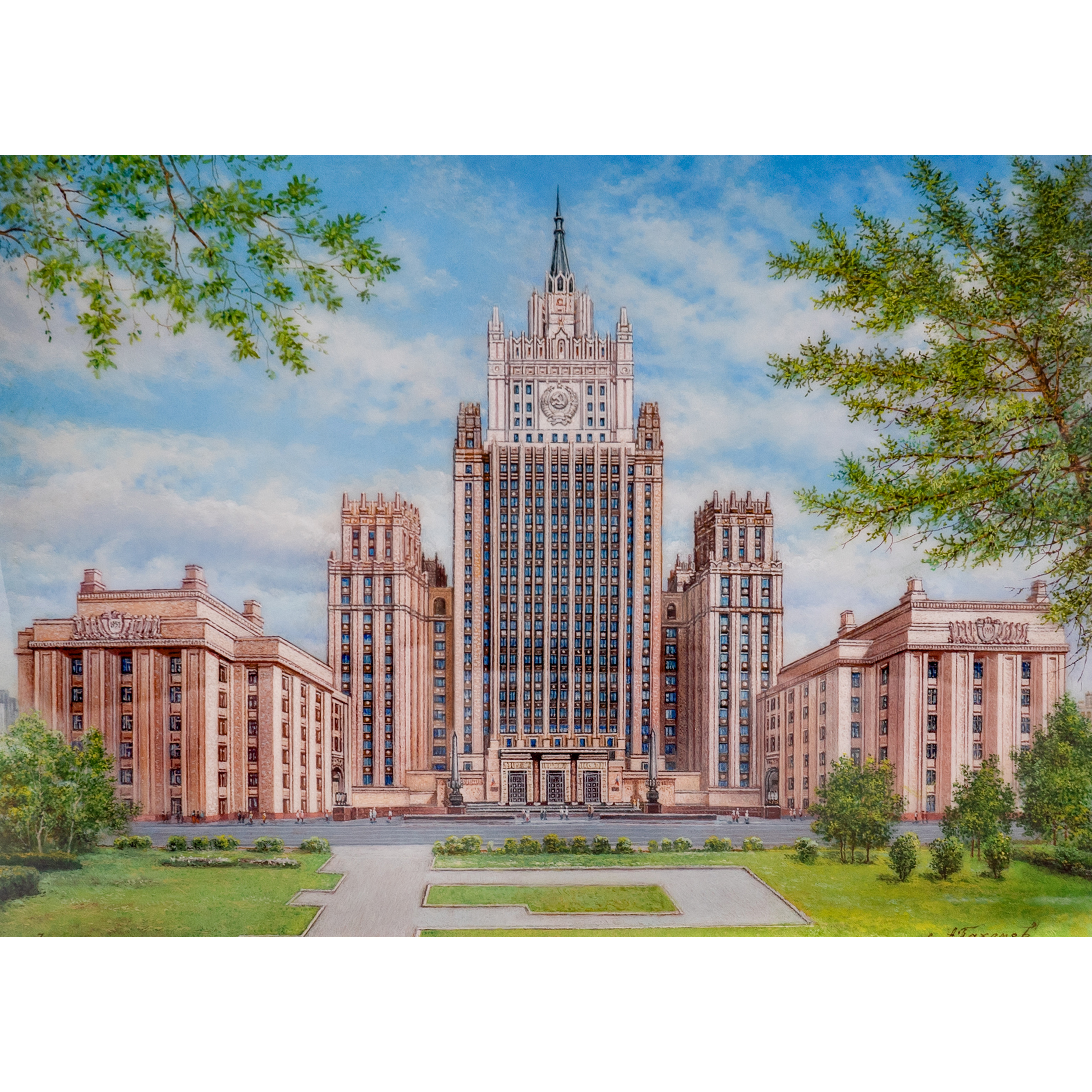 Шкатулка "Здание МИД" Пахомов, Федоскино