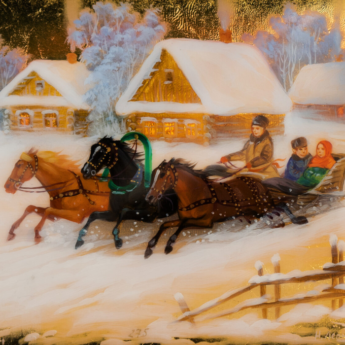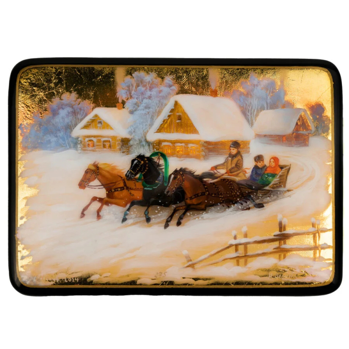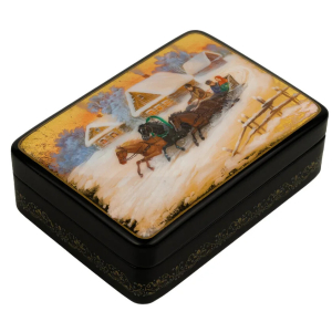 Шкатулка "Зимняя тройка" Леонова, Федоскино