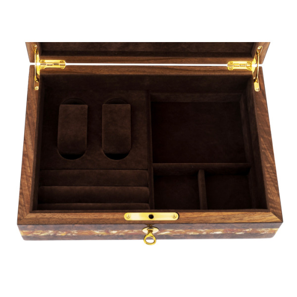 Этот оригинальный сувенир можно рассматривать очень долго. Приятно прикасаться к шкатулке, любуясь ее текстурой с естественным природным рисунком. Хочется остановить взгляд на резной часовой механике с шестеренками и пружинами. Так и тянет бережно разложить дорогие часы на мягком бархате. Роскошная шкатулка будет оценена по достоинству в качестве подарка, особенно если выгравировать оригинальное поздравление на шильде.