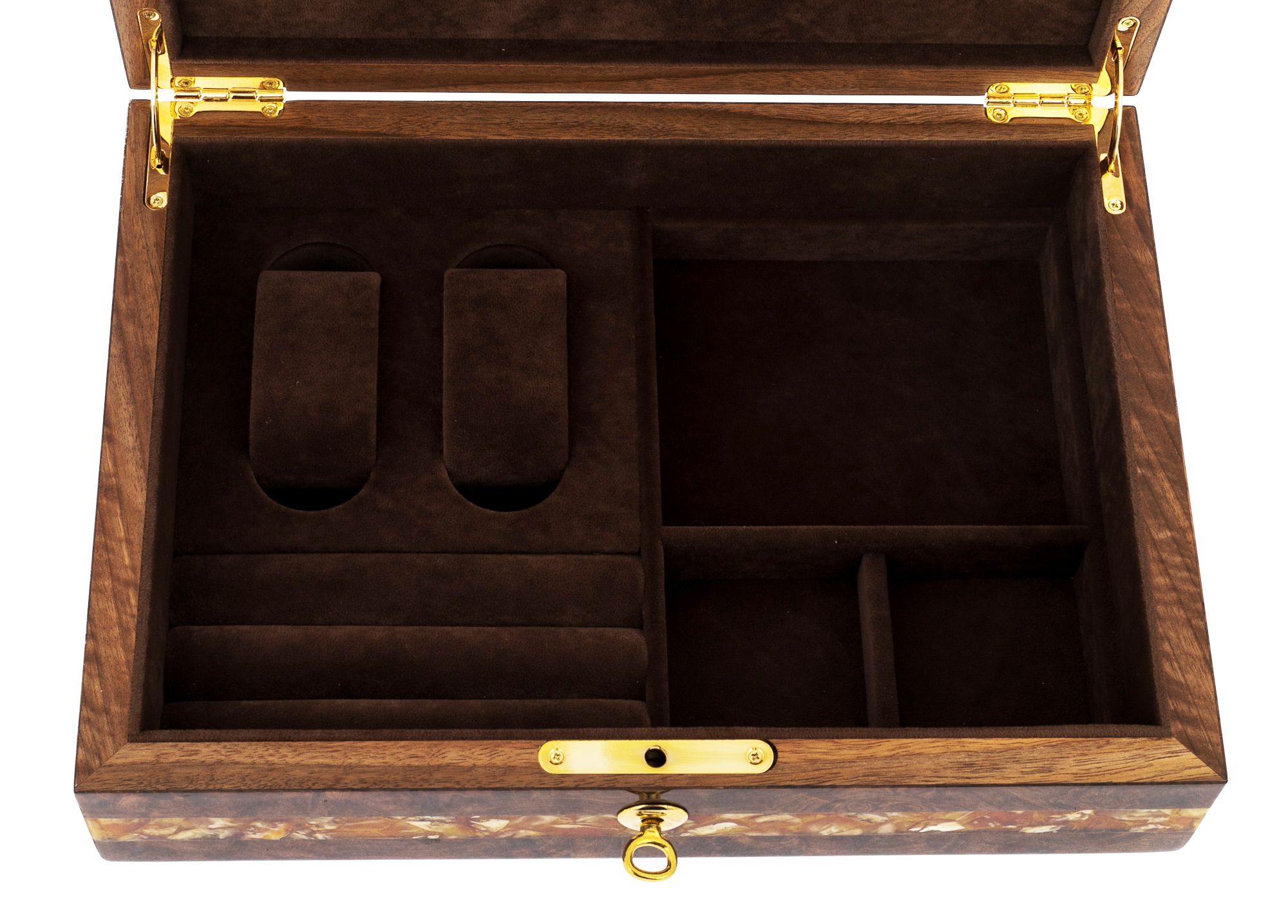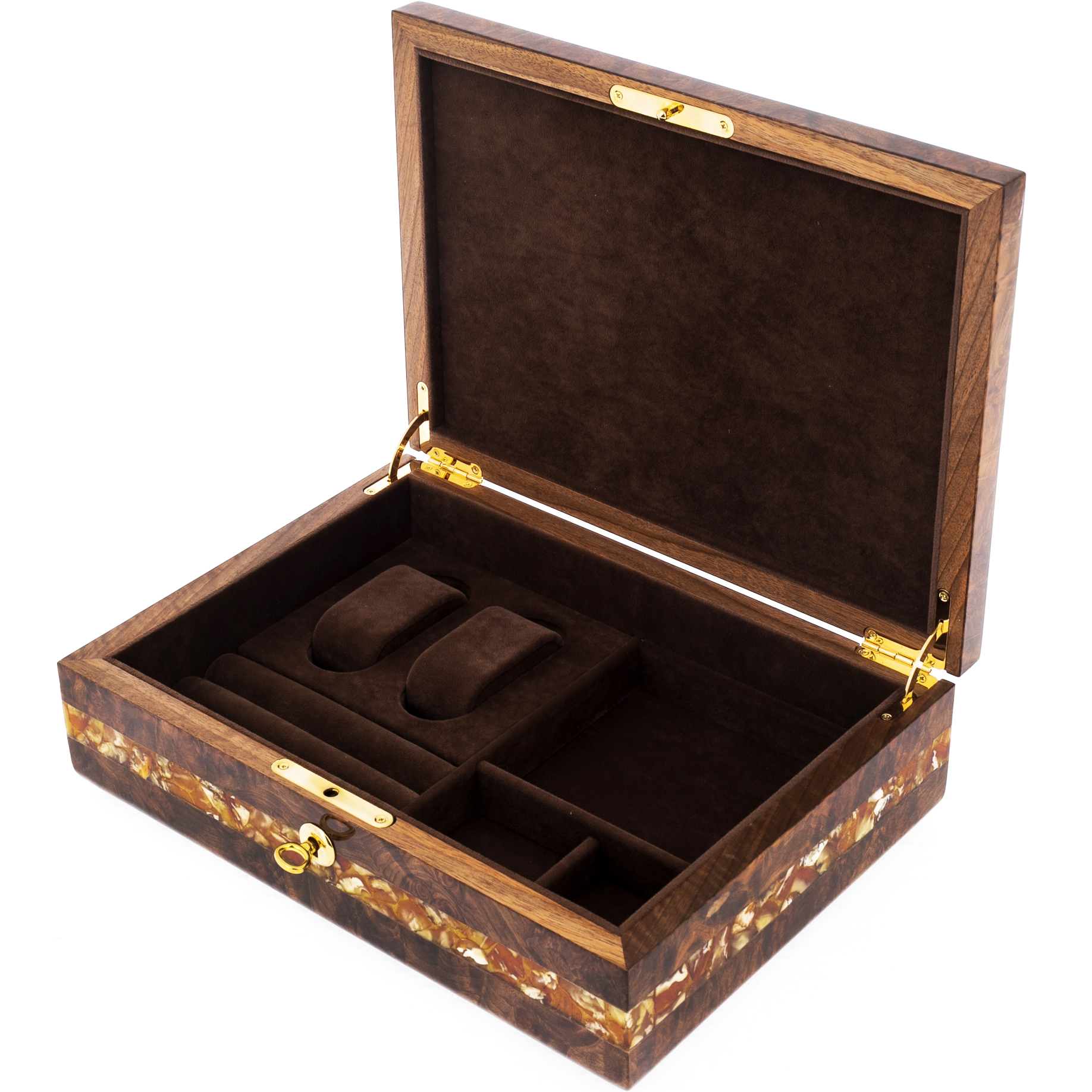 Шкатулка для часов "Александр" из корня ореха и янтаря, темный ложемент