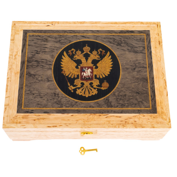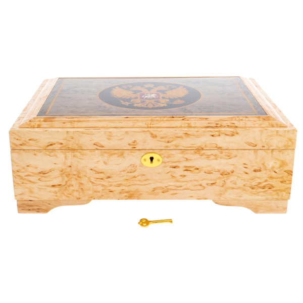 Подарочная шкатулка предназначена для ценителей символики и высокого мастерства, руководителей высшего уровня, государственных деятелей и деловых партнёров, стремящихся подчеркнуть свою связь с историей и статусом. В таком предмете органично соединены мощь, корни и сдержанная роскошь, не нуждающаяся в пояснениях.