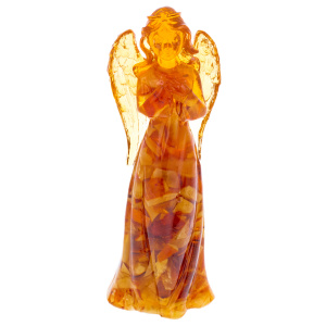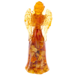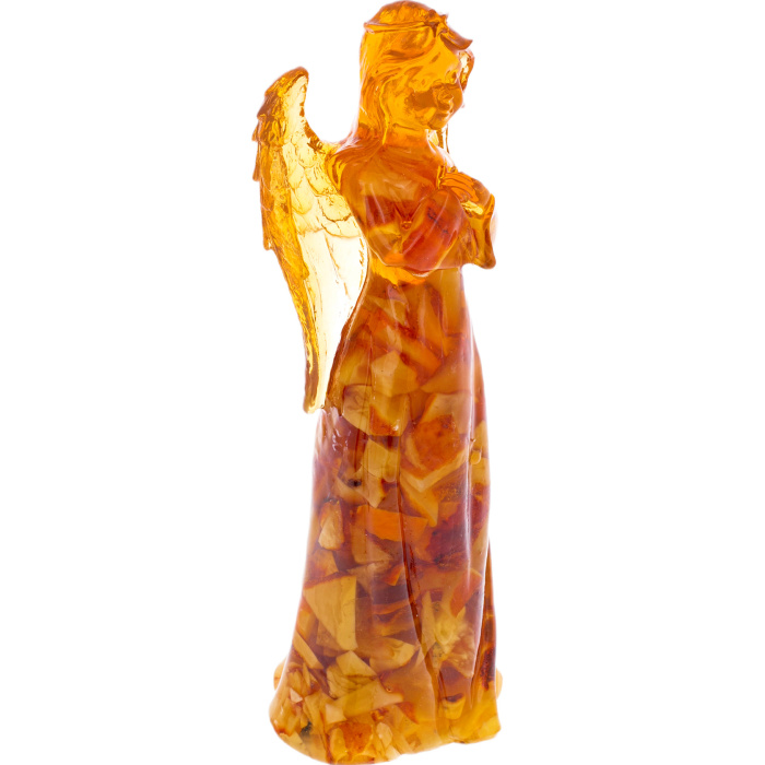 Статуэтка «Ангел» из натурального янтаря воплощает образ небесного покровителя, хранящего тепло и свет. Полупрозрачное тело фигуры рождает игру бликов — солнечные оттенки переливаются от золотистого до медового, создавая впечатление, будто сама статуэтка излучает мягкое сияние. Внутри видны кусочки природного янтаря, замершие в гармоничном беспорядке, благодаря чему каждый экземпляр приобретает неповторимый рисунок и настроение.
