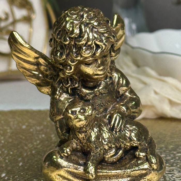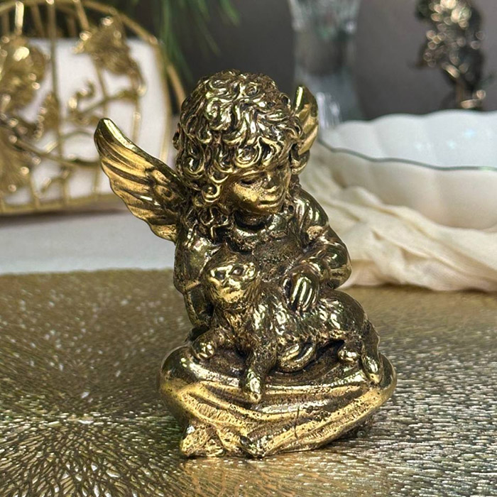 Статуэтка из латуни "Ангел с котом"
