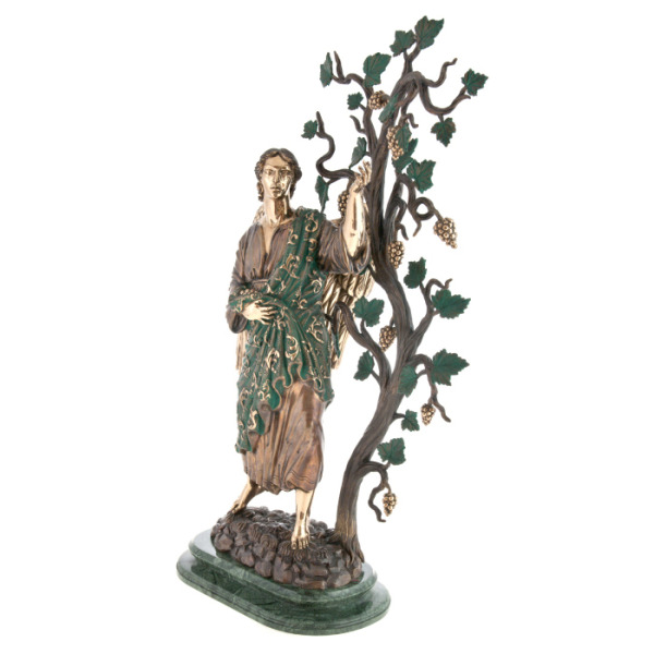 Вглядываясь в этот шедевр из бронзы, вы словно перенесетесь в мир, где небеса переплетаются с землей, а каждое мгновение пропитано духовной гармонией и вечной красотой. Эта авторская скульптура воплощает образ Небесного Виноградаря, который, будто невидимыми нитями, связывает земное существование с божественными мудростью и заботой.