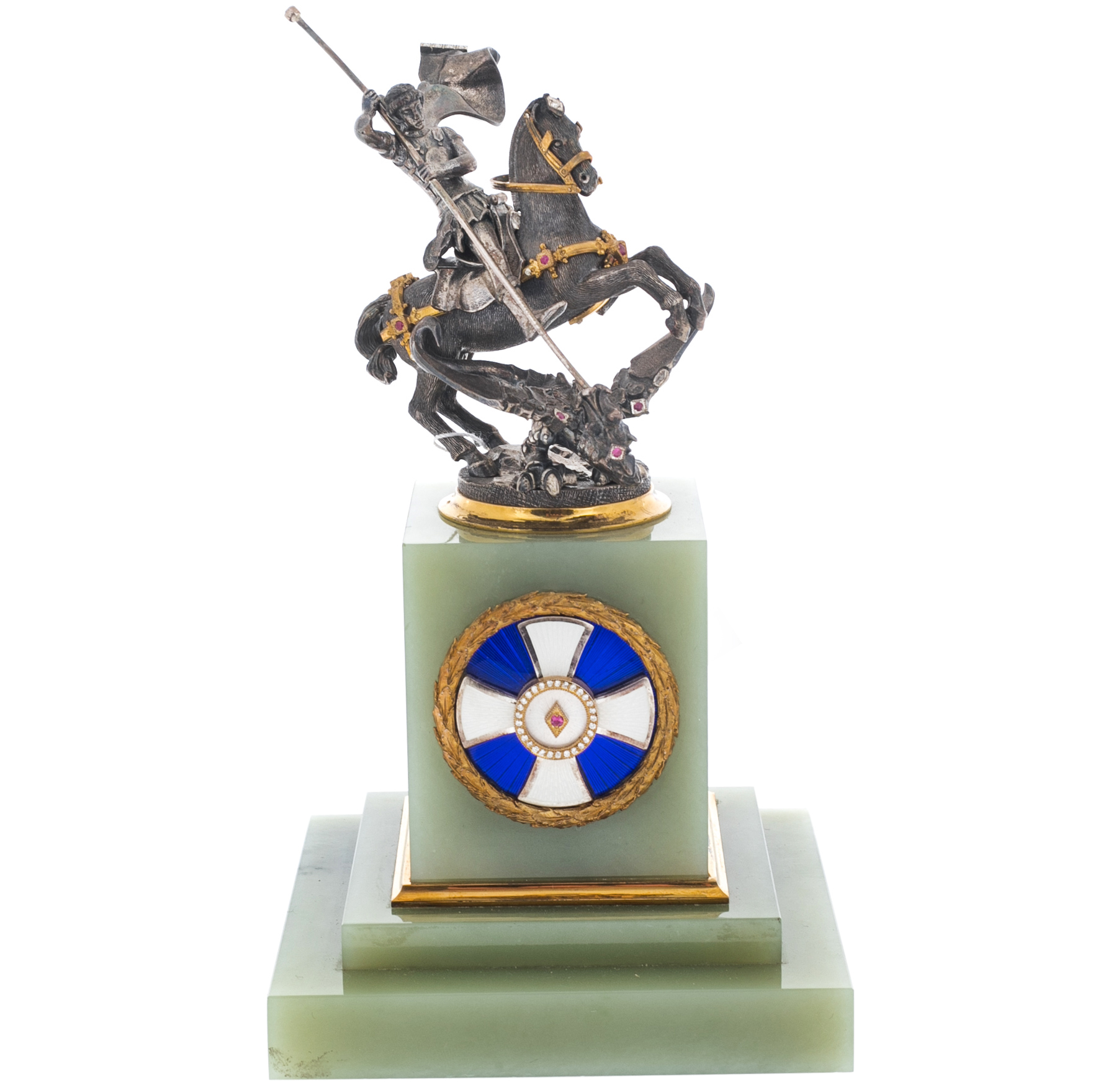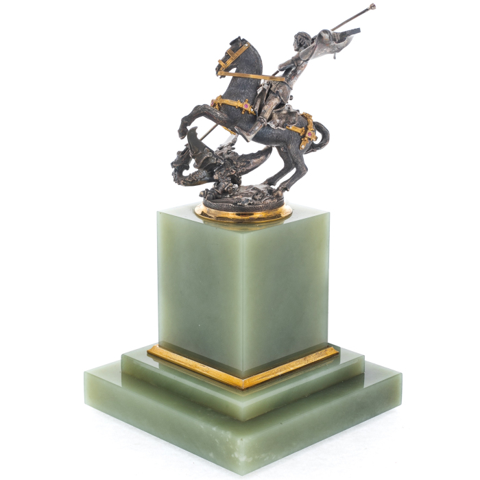 Статуэтка из нефрита и серебра "Святой Георгий"