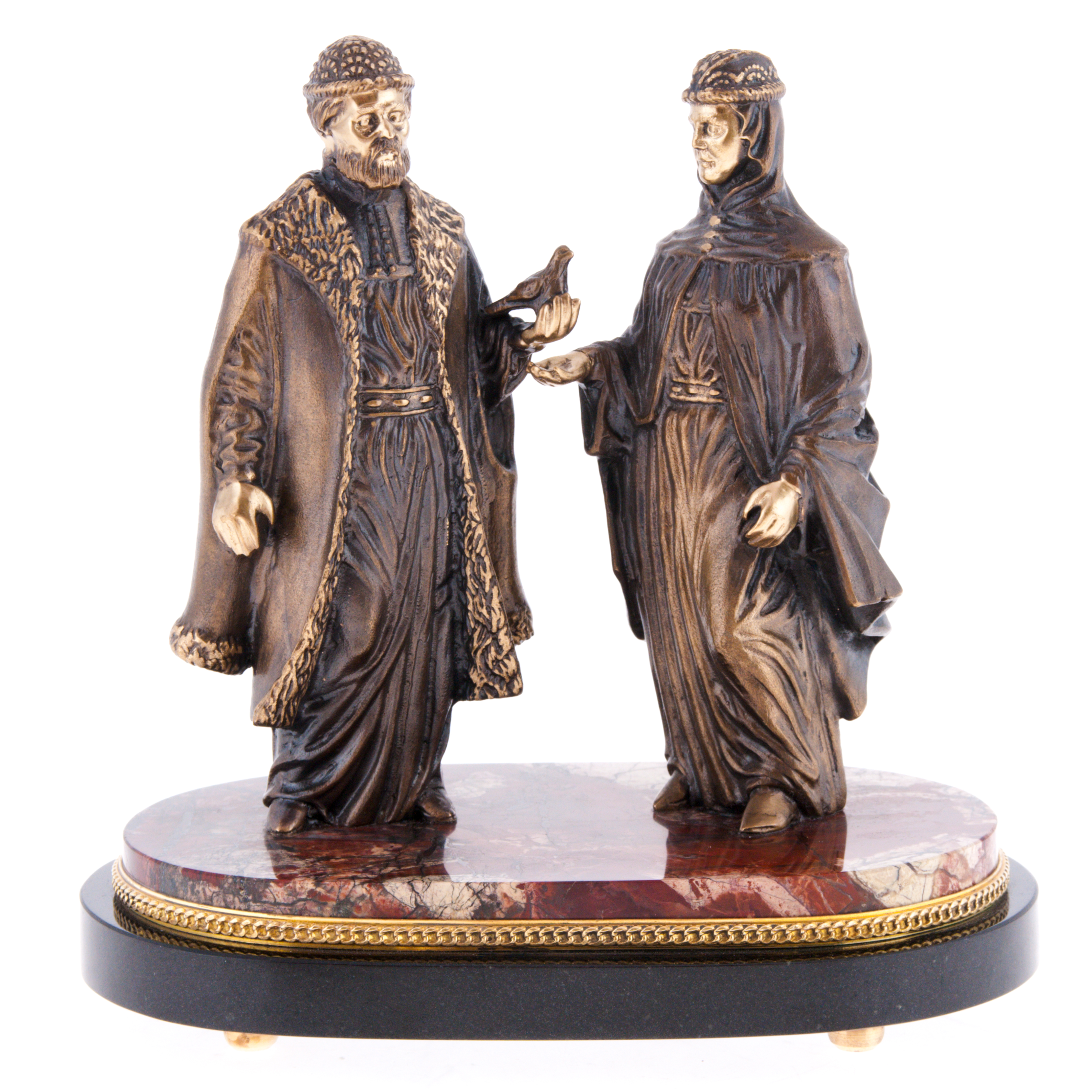 Статуэтка бронзовая "Пётр и Феврония" на яшме
