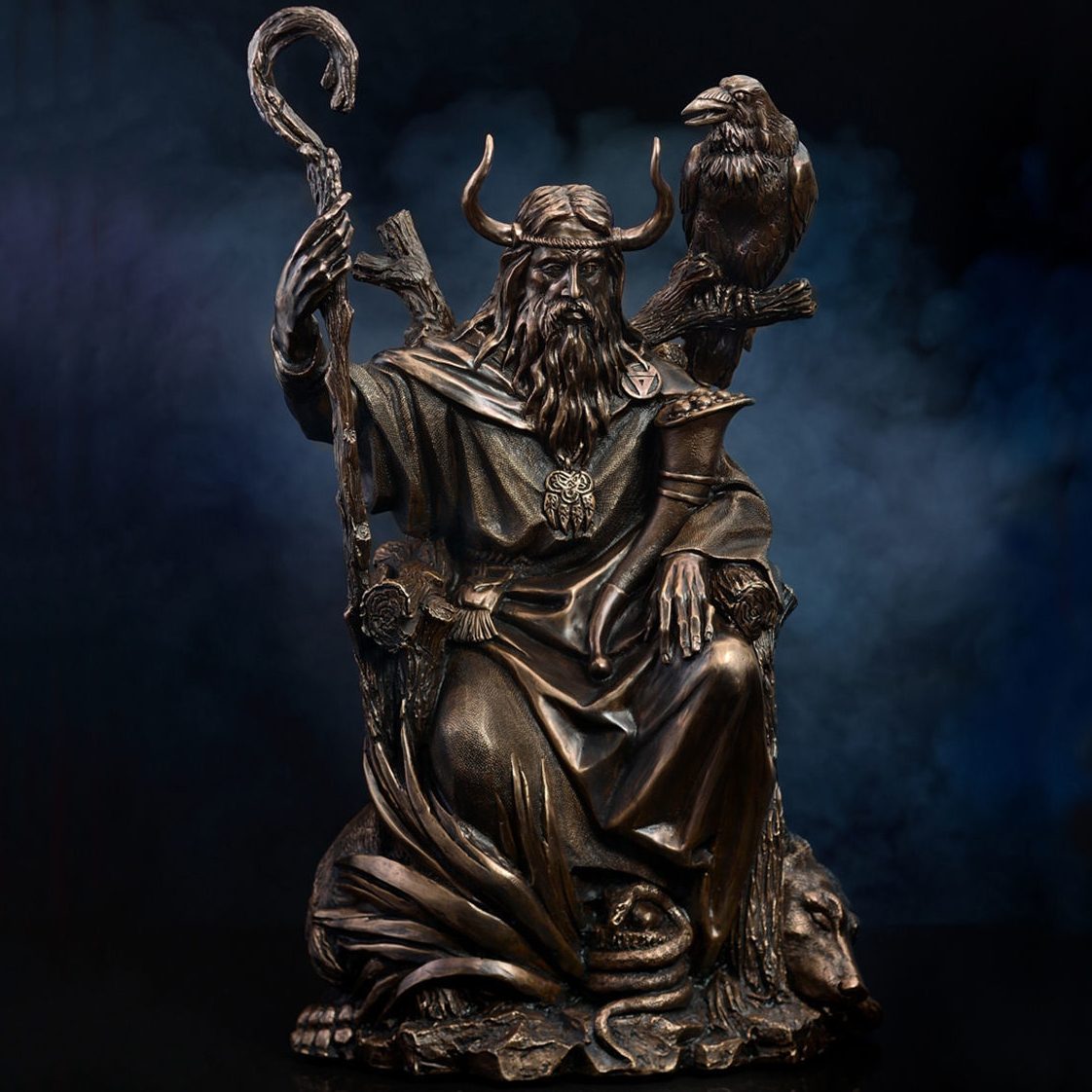 Авторская скульптура из бронзы "Велес с вороном"