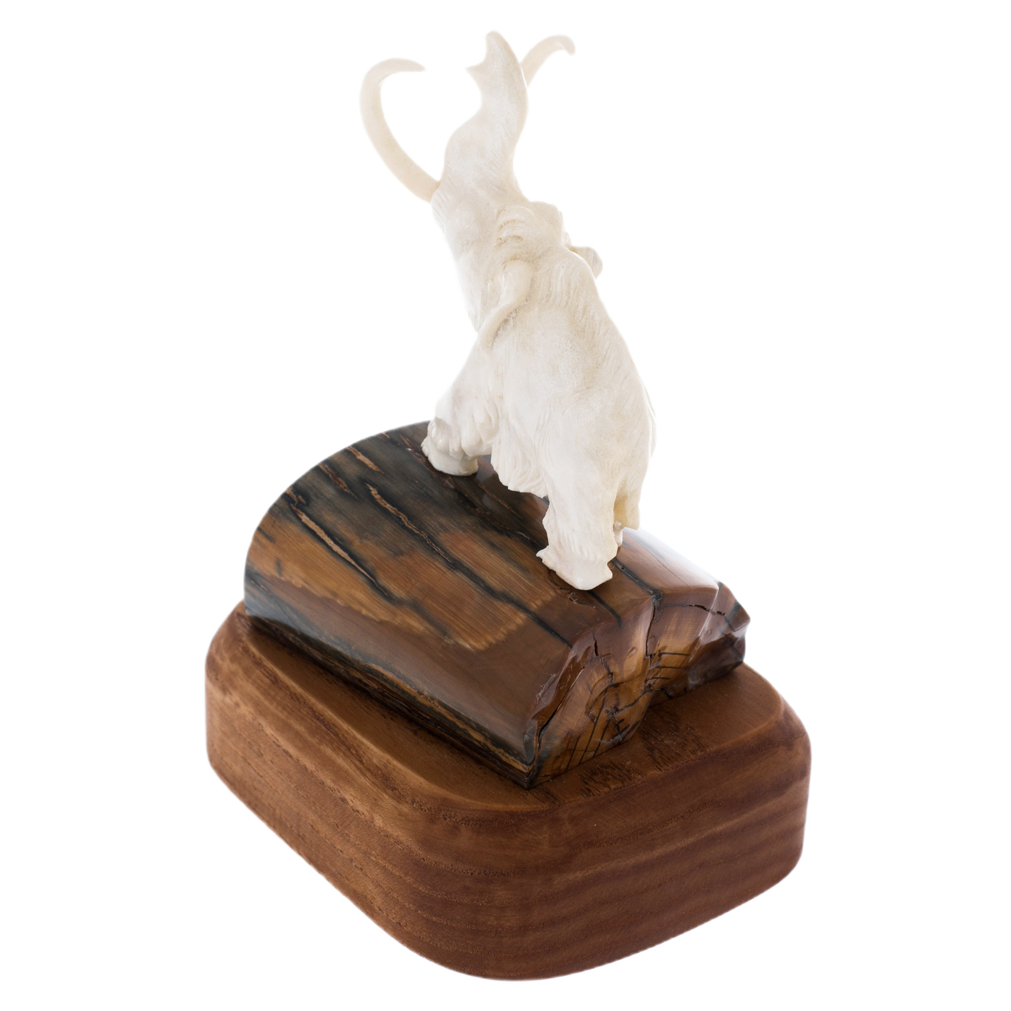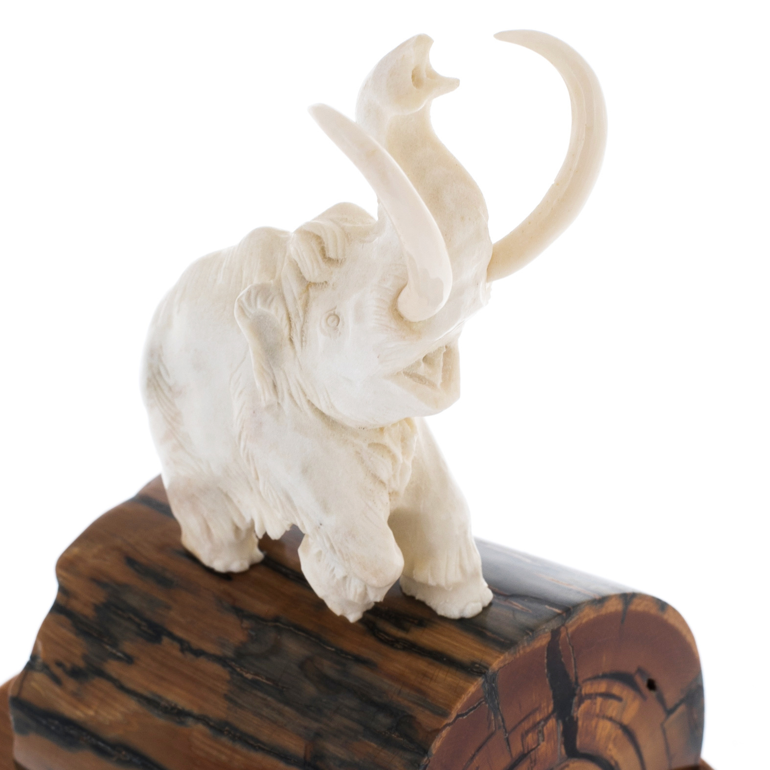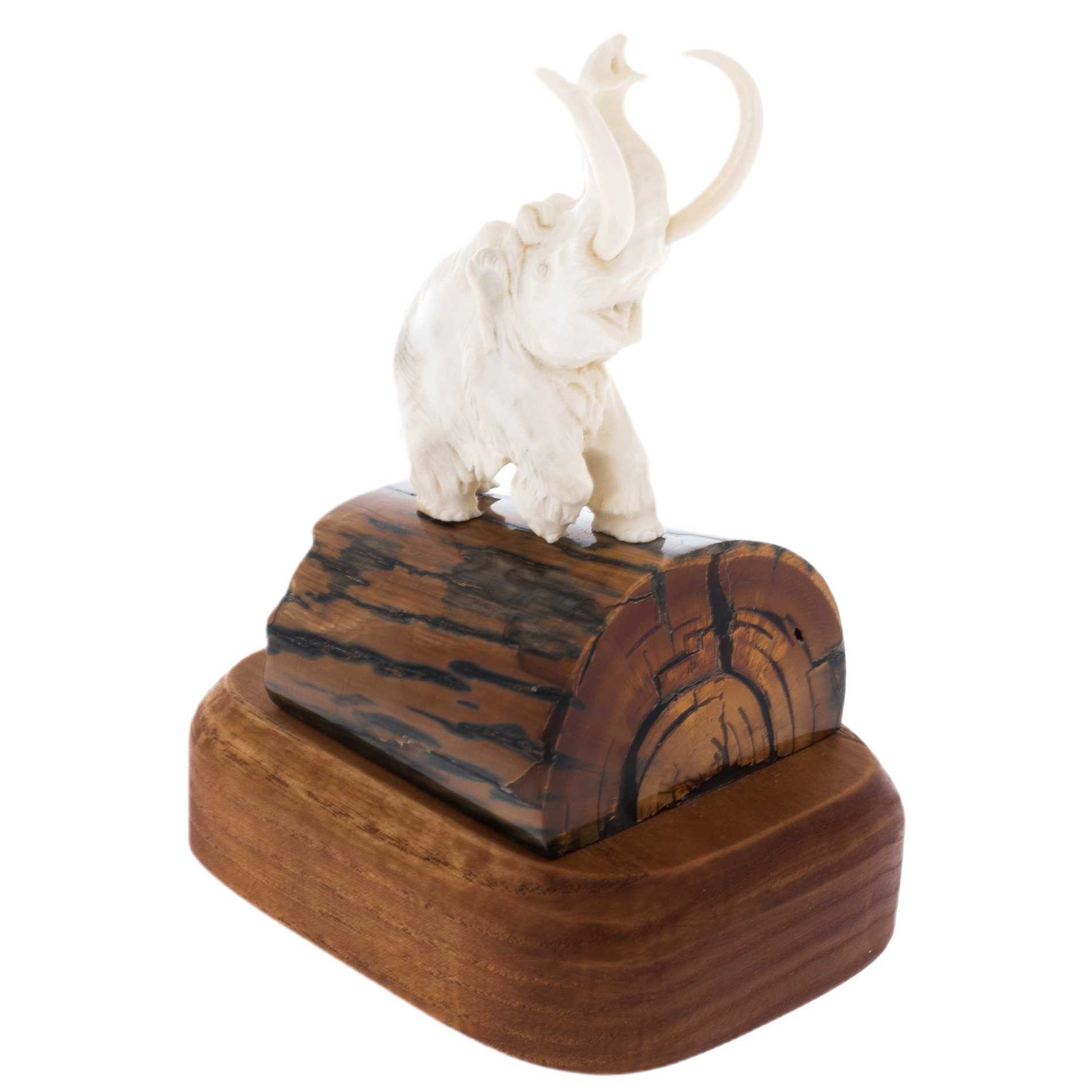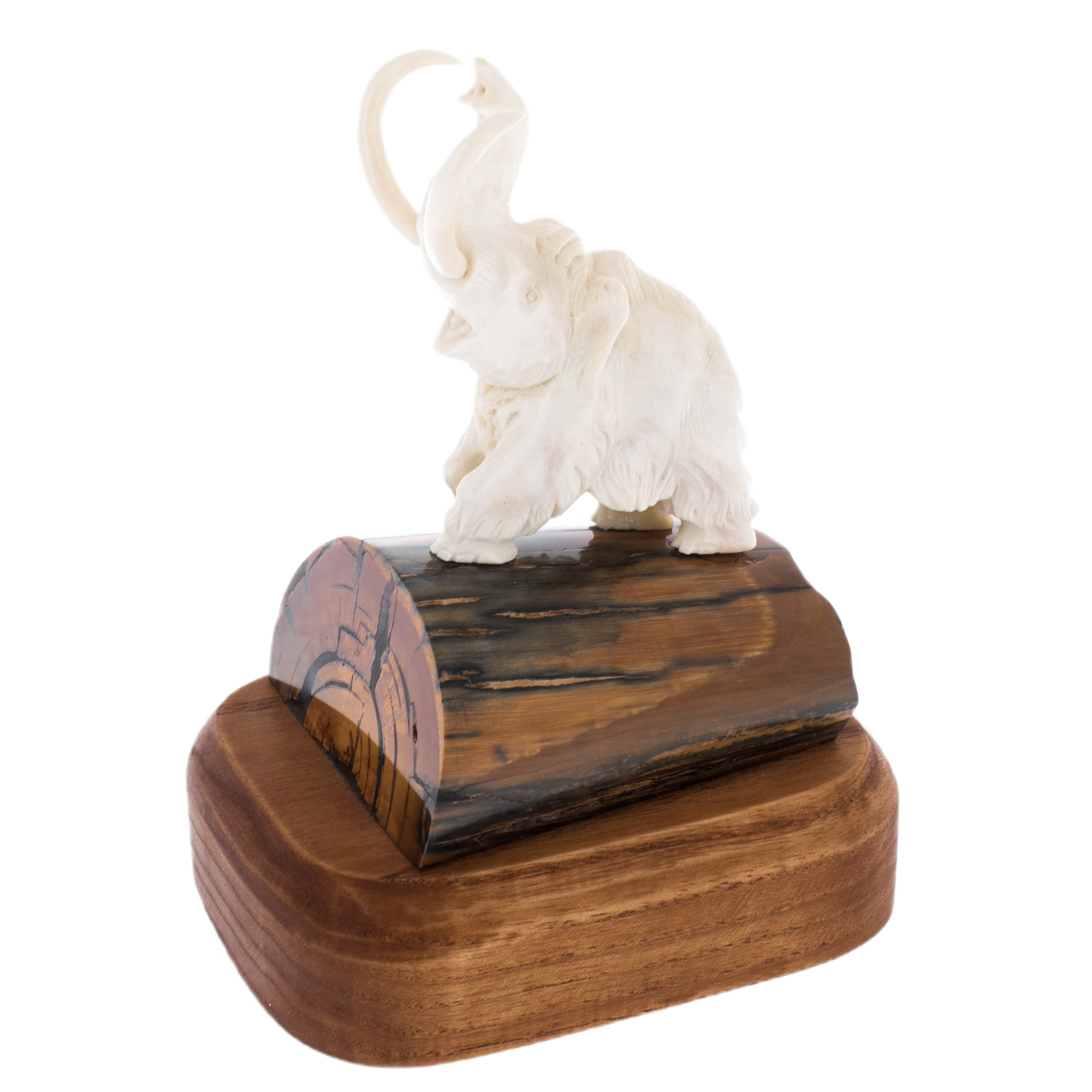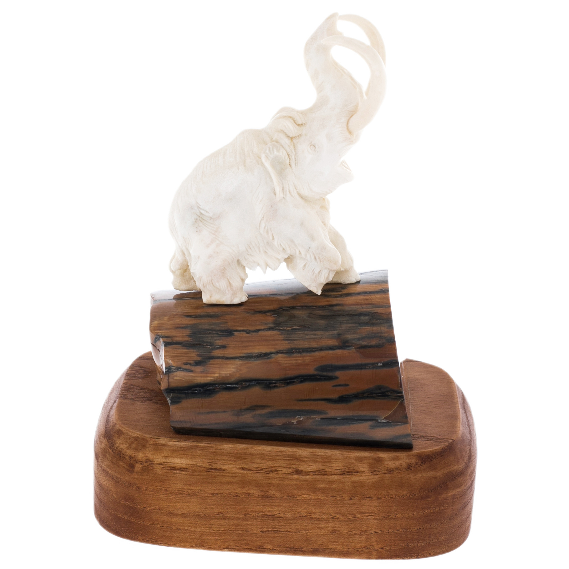 Скульптура из бивня мамонта и рога лося "Мамонт на подставке"