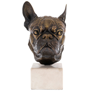Скульптура из латуни и мрамора "Бульдог" с патиной