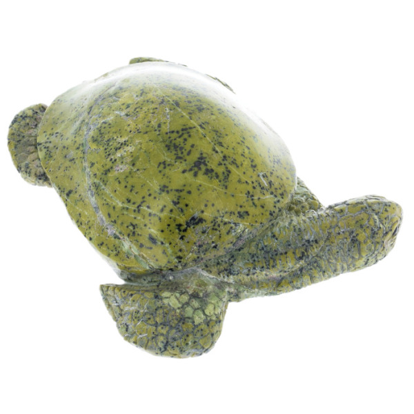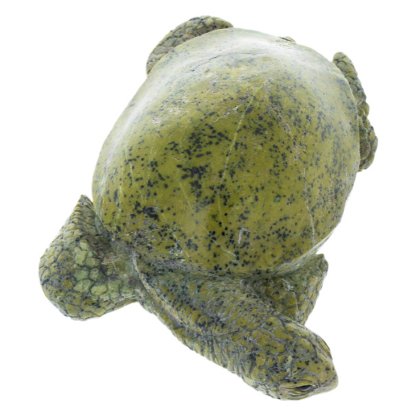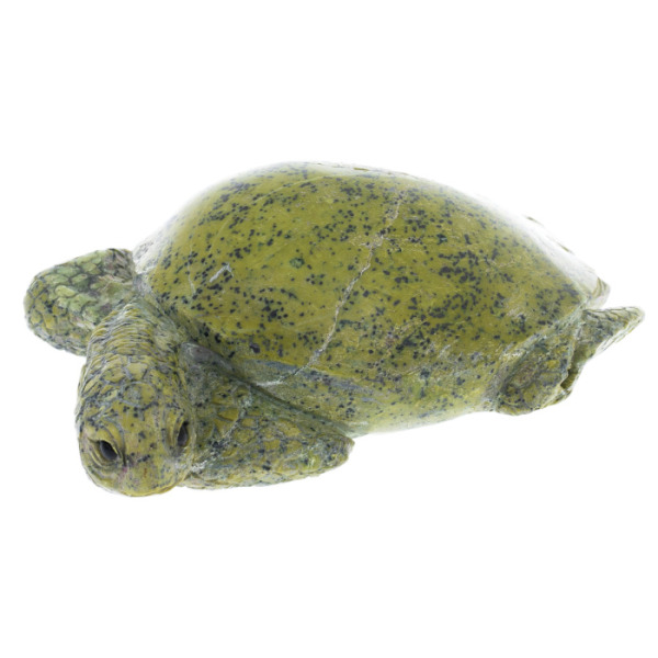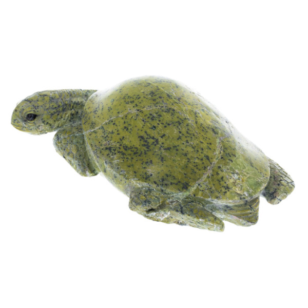 У черепахи гладкий, эргономичный панцирь, который позволяет этим животным прекрасно чувствовать себя под водой и плавать гораздо быстрее, чем передвигаются их сухопутные собратья. Вместо лап у морской черепахи – большие плоские ласты, которые резчик по дереву украсил чешуйками. У черепахи большая голова, черные глаза-бусинки и, как у всех черепах, небольшой треугольный хвостик. Черепаха сделана из дерева суар, а значит, не боится ни влаги, ни брызг, ни дождевых капель.