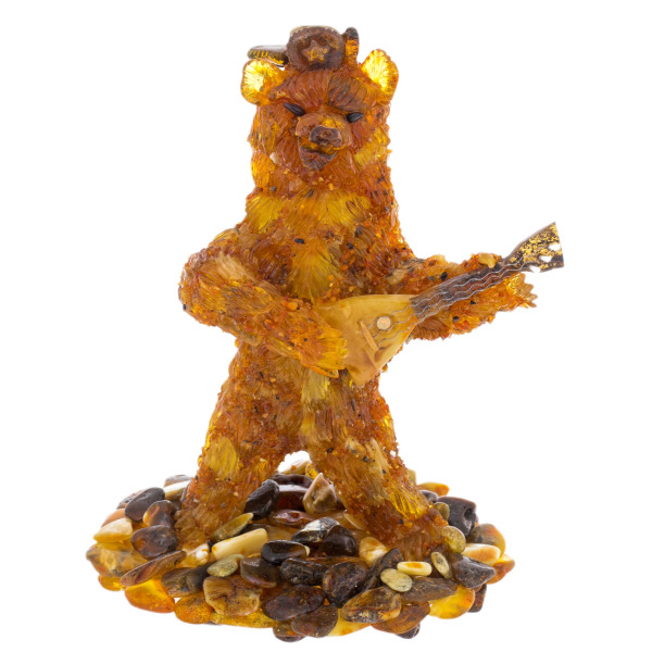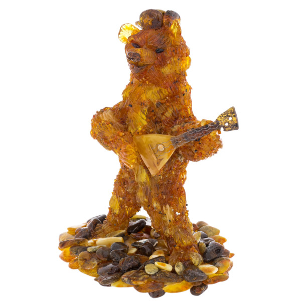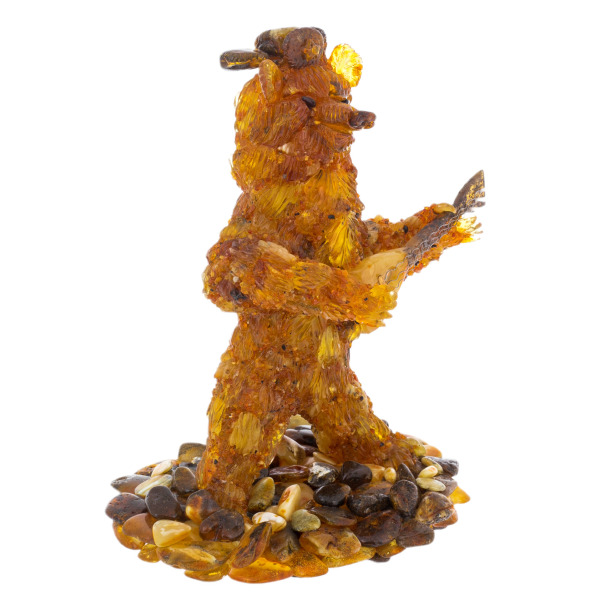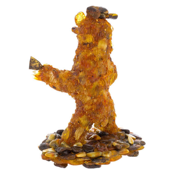 Трепетное золото веков сплетено в этом образе силы, власти и великодушия. Янтарный медведь, вздымающийся над мозаичным основанием из камня, кажется самим воплощением земли, истории и непреклонного духа. Его шерсть сверкает на свету, словно застывший солнечный свет, веками проникавший сквозь недра Балтики. Каждая пластинка, каждое янтарное перышко на его лапах переливается теплом, пробуждая в зрителе нечто первозданное — желание обладать символом нерушимой мощи.