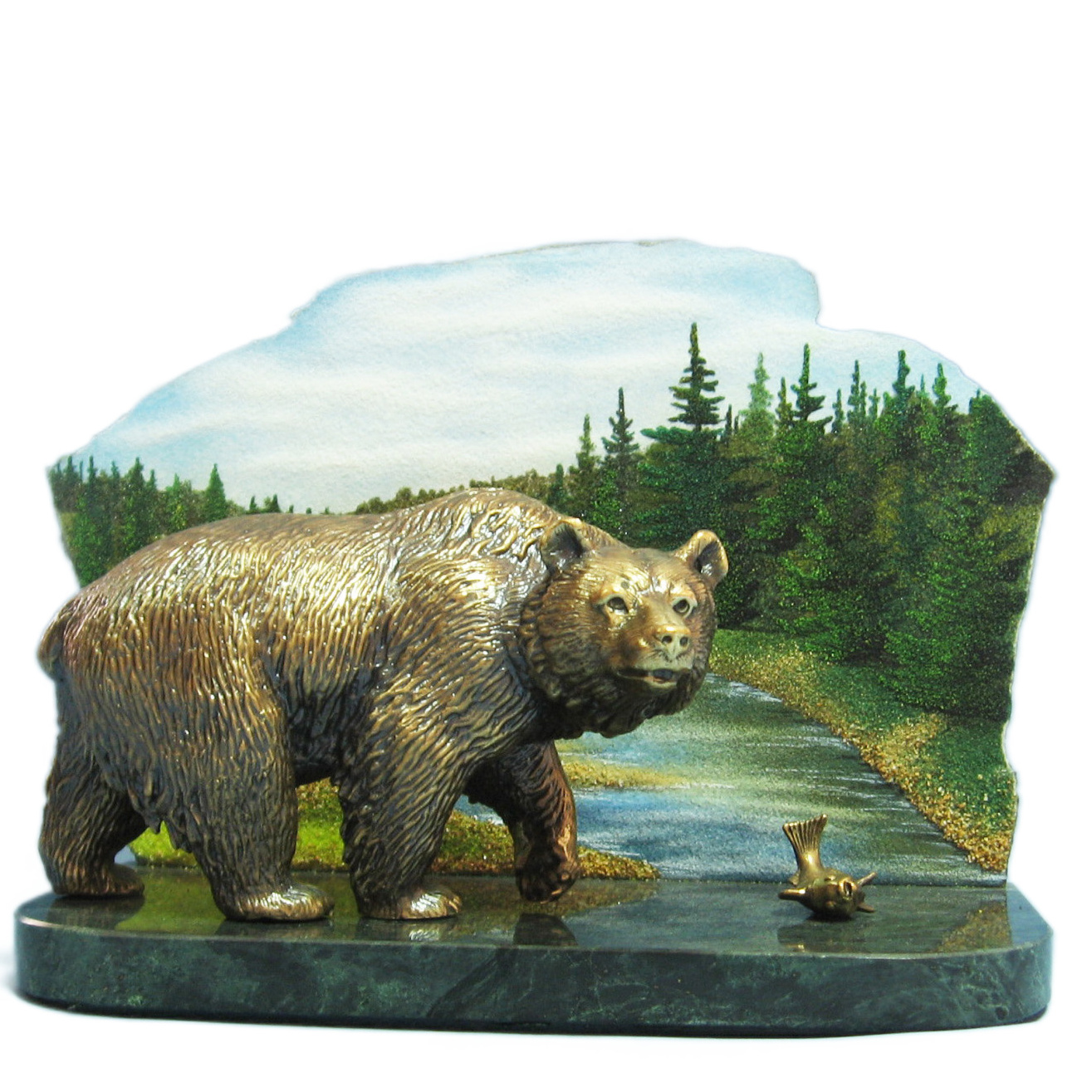 Статуэтка из бронзы и змеевика "Медведь. Природа"