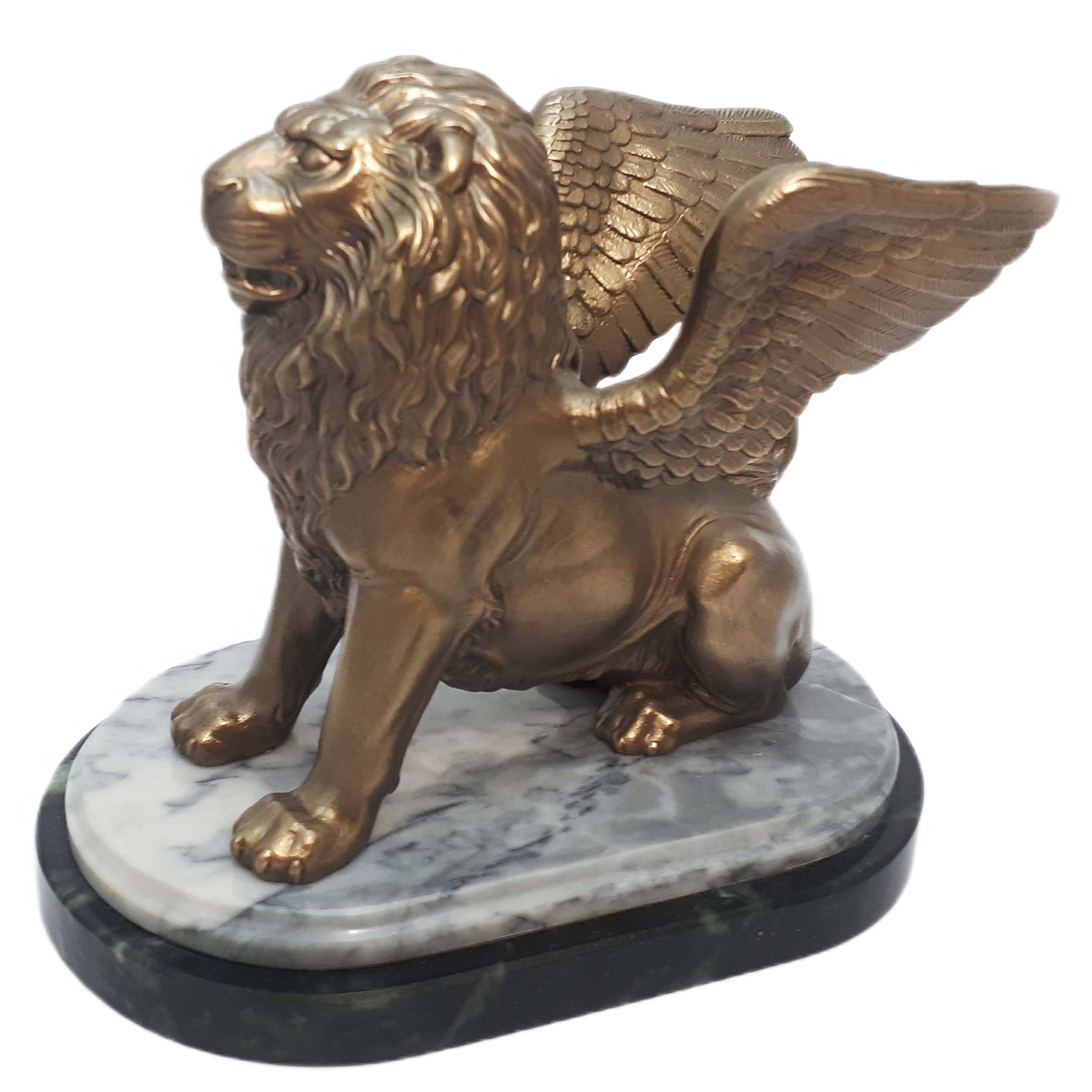 Статуэтка из бронзы, мрамоора и змеевика "Лев крылатый"