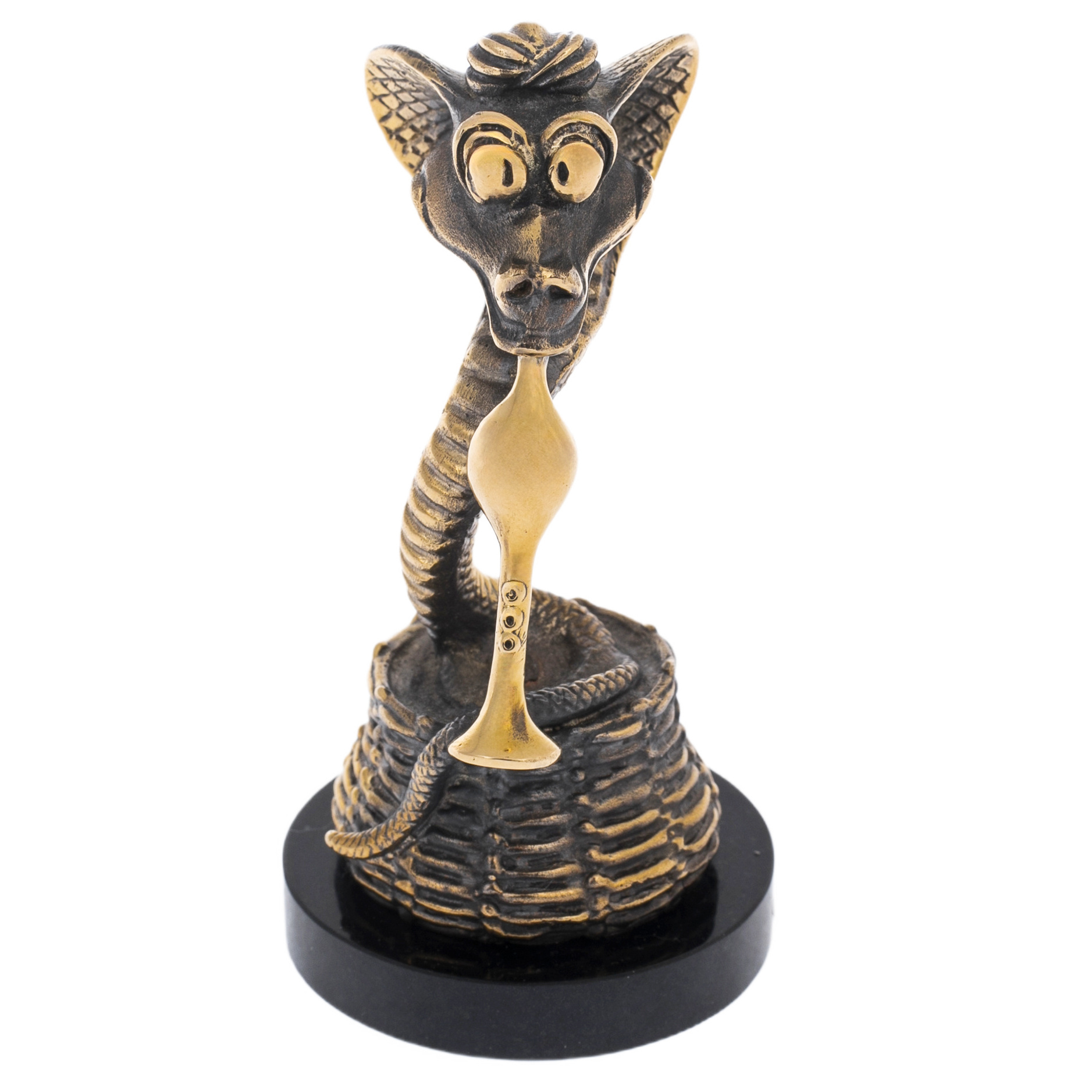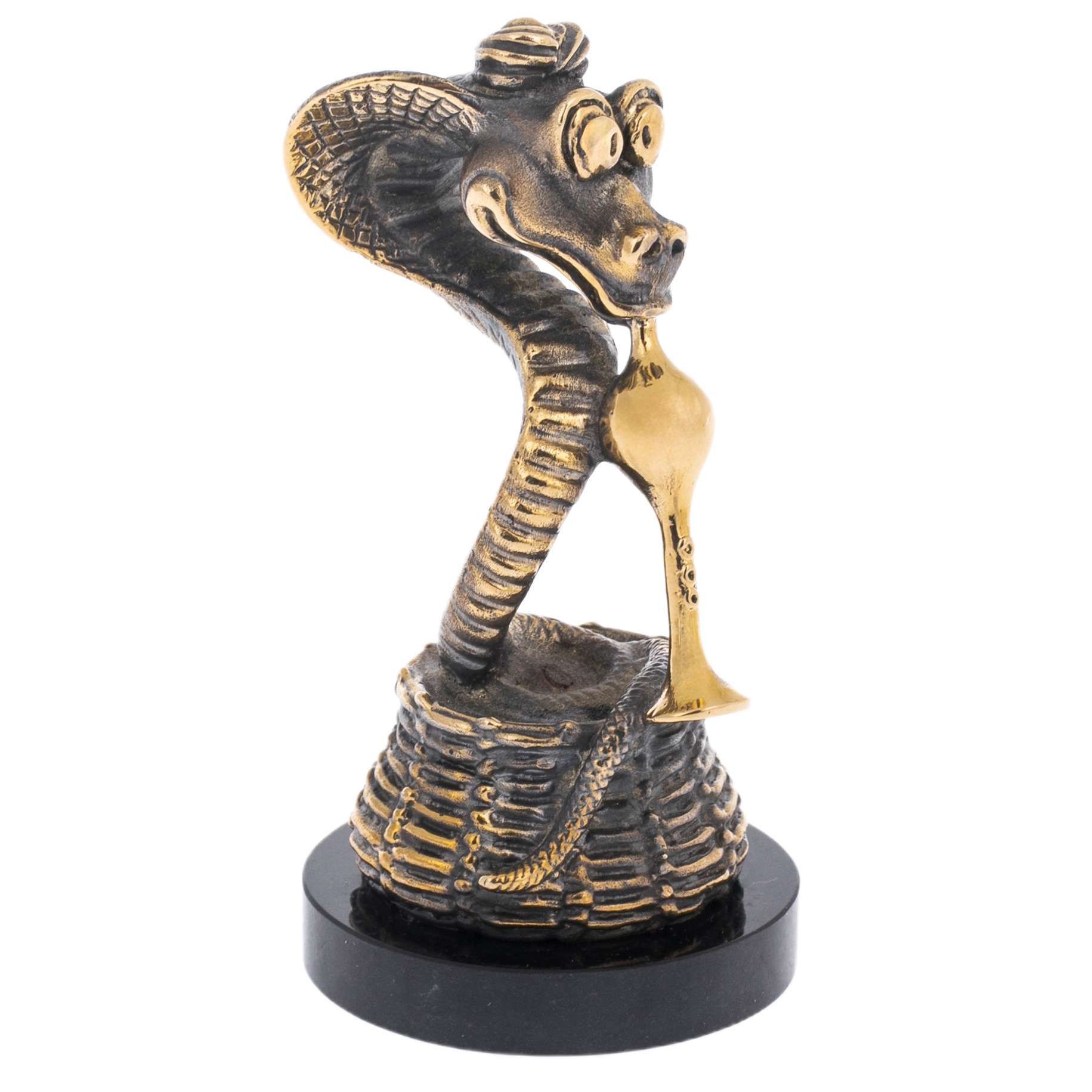 Статуэтка из латуни "Символ года. Змея" на подставке из долерита
