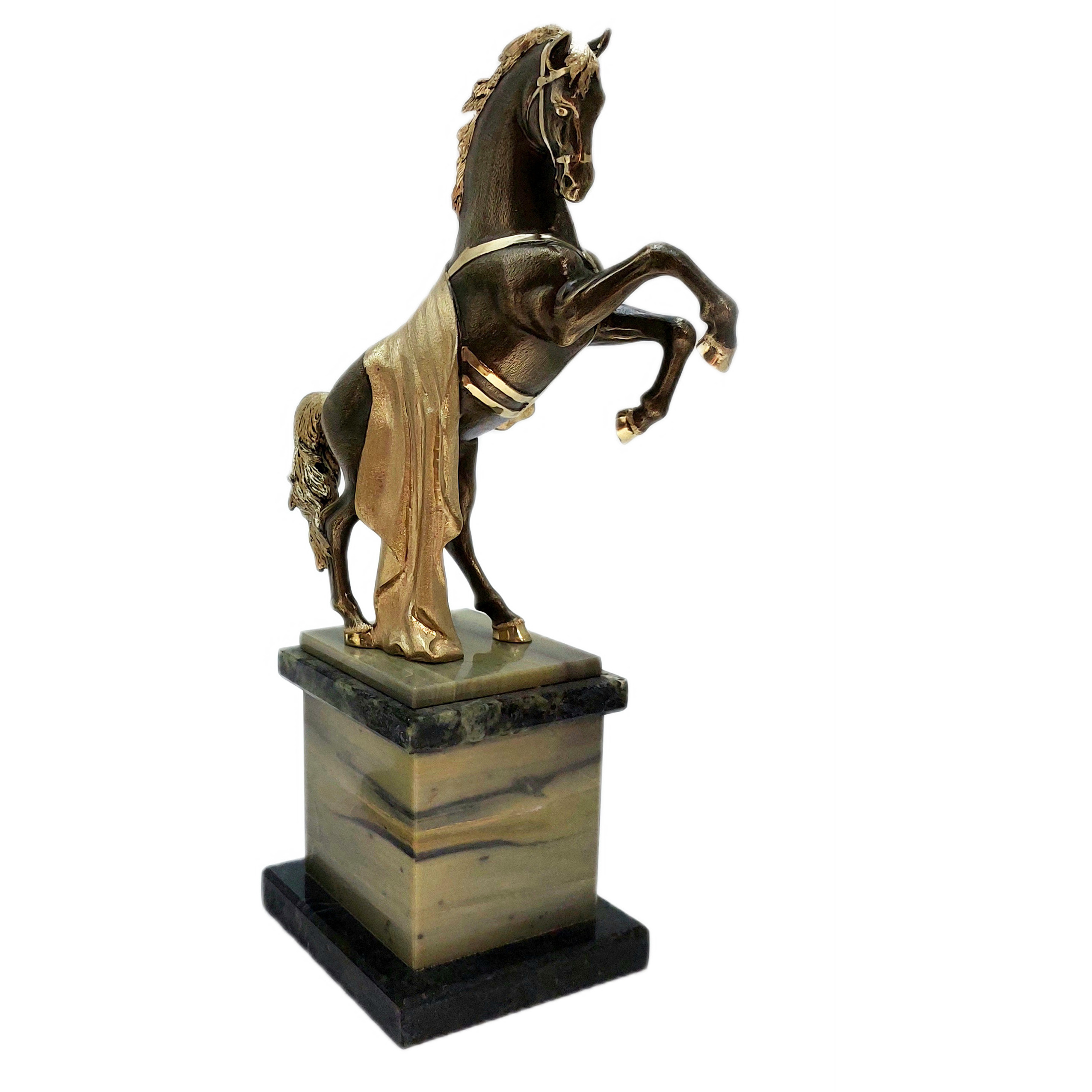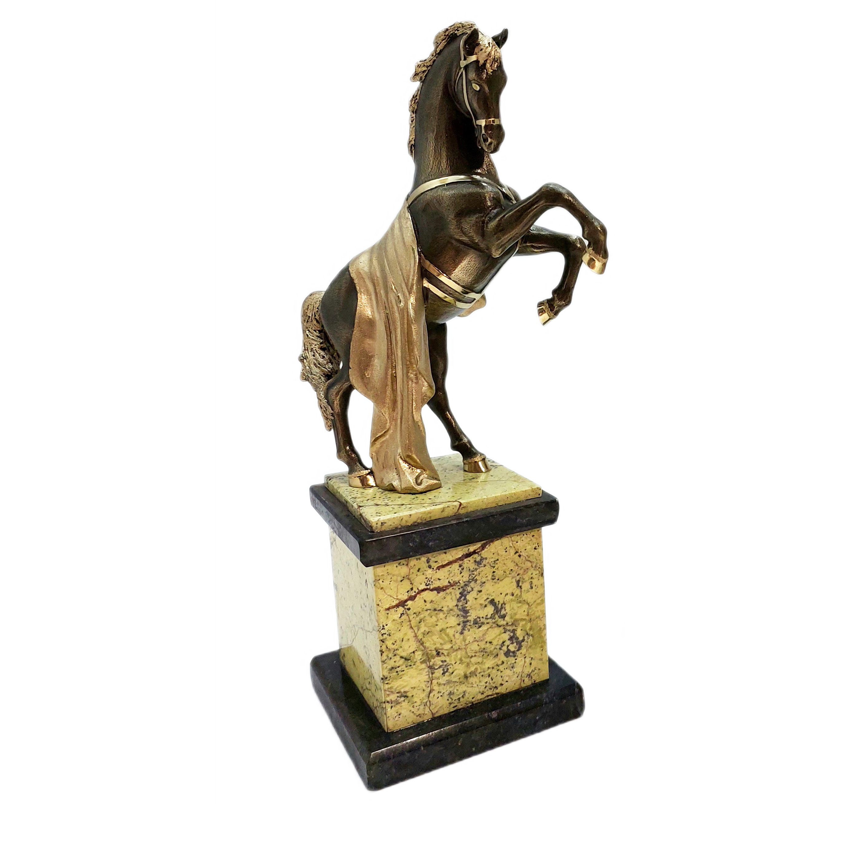 Статуэтка из офиокальцита, бронзы и змеевика "Конь" на пьедестале