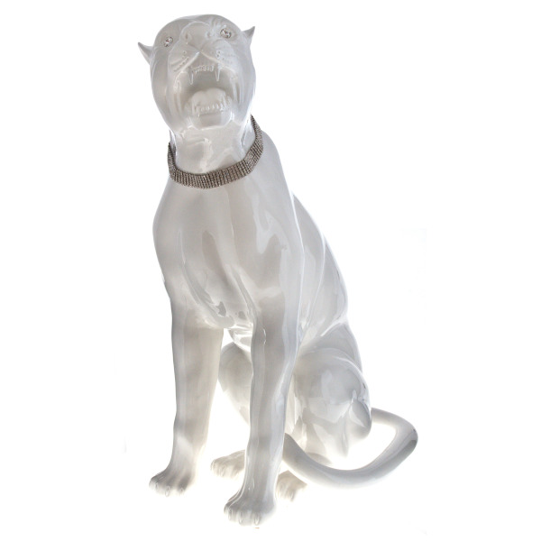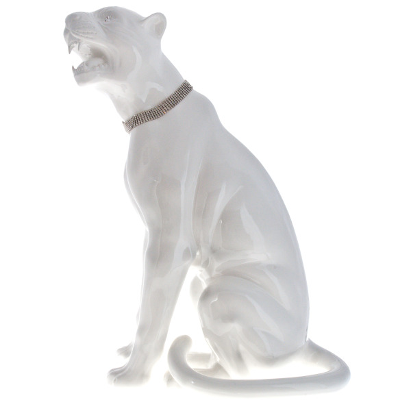 Статуэтка "Пантера" чернаяСтатуэтка "Пантера" чернаяФарфоровая статуэтка «Чёрная пантера» — идеальное воплощение силы, грации и роскоши в одной из самых притягательных зооморфных форм. Величественная кошка застыла в момент внутреннего напряжения, с приоткрытой пастью и сверкающим взглядом, исполненным хищного спокойствия. Её корпус — безупречно гладкий, словно отполированный до зеркального блеска оникс, переливается глубоким чёрным лаком, подчеркивающим анатомически выверенные линии мускулатуры. Изящная поза с прямой спиной, чуть согнутыми передними лапами и обвивающим тело хвостом передаёт ощущение скрытой готовности к броску, подчёркивая аристократичность натуры.