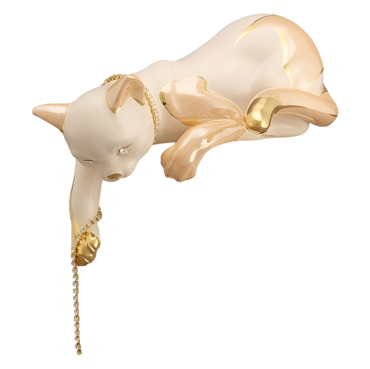 Статуэтка "Кошка лежащая", цвет: бежевый с кремовым и золотым