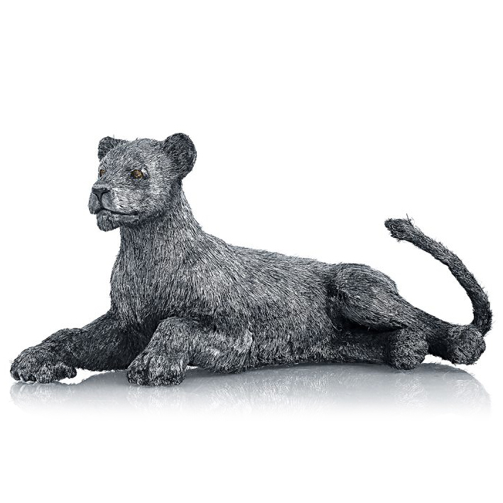 Фигура выполнена из серебра. Взгляд львицы сверкает бриллиантами — 0,147 карата чистого блеска, подчеркивающего дикость и благородство хищной природы. Все детали — от изгибов мускулатуры до текстуры шкуры, отточены вручную в техниках литья, филигранной гравировки и рельефной проработки «шерсти».