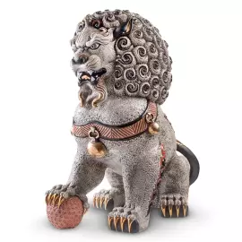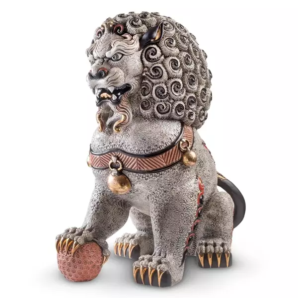 Керамическая скульптура «Лев с шаром» представляет собой выразительный символ охраны, власти и непоколебимой уверенности, предназначенный для пространств, где ценится не только эстетика, но и смысловое наполнение предметов. Массивная фигура льва, уверенно опирающегося на передние лапы, передаёт ощущение внутренней силы и контроля, а шар, зажатый под лапой, усиливает образ владычества над обстоятельствами и устойчивости перед любыми вызовами. Композиция ориентирована на владельцев, стремящихся подчеркнуть статус и сформировать вокруг себя атмосферу защищённости и авторитета.