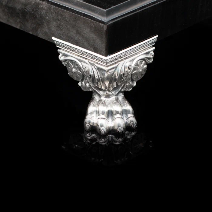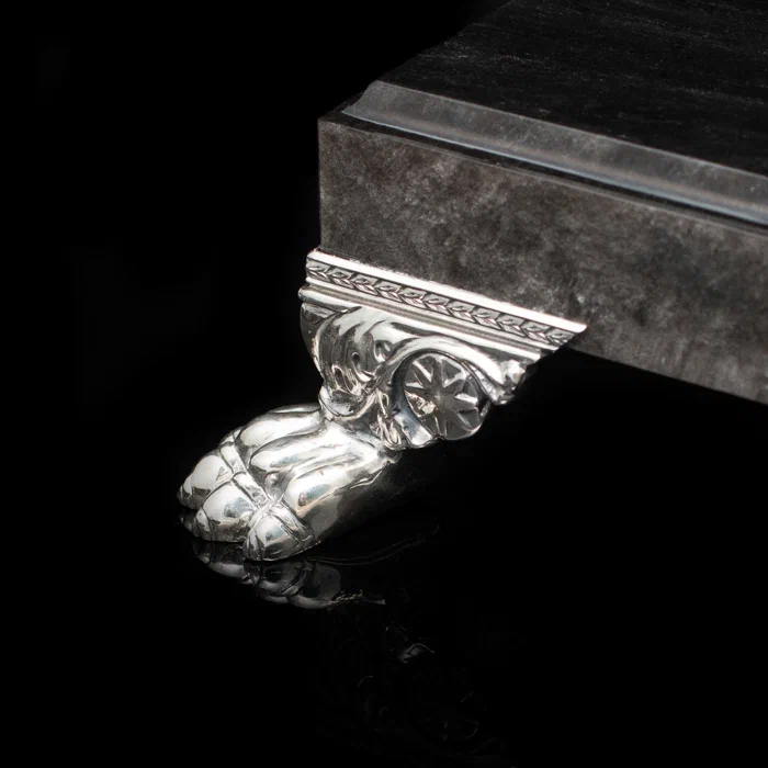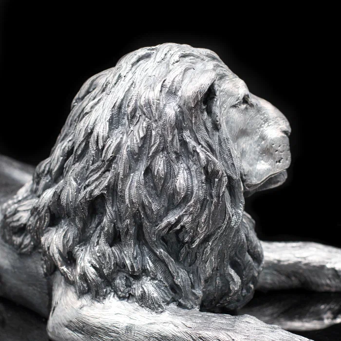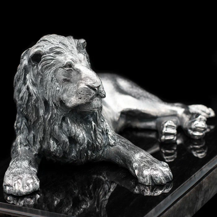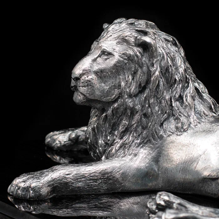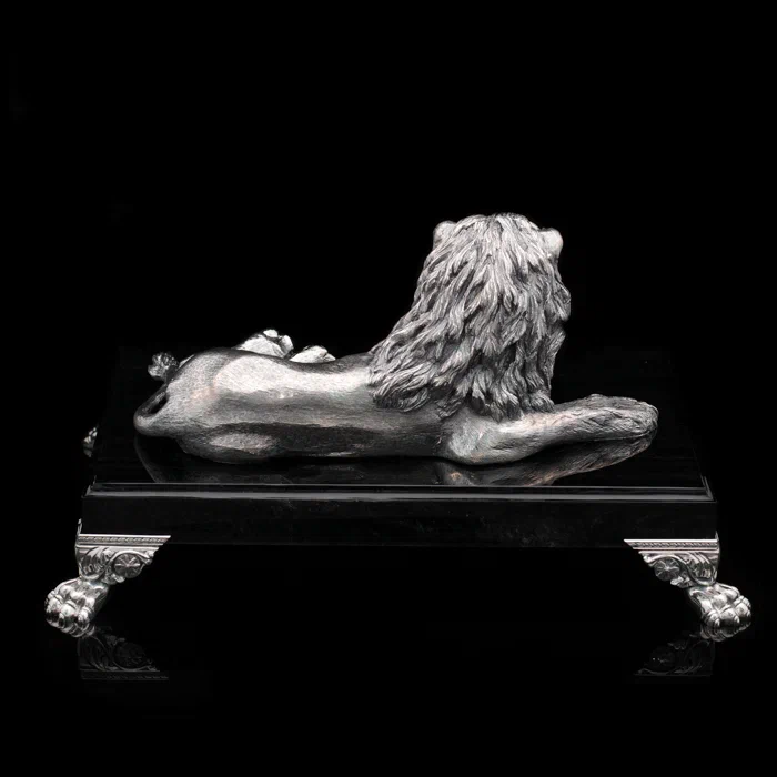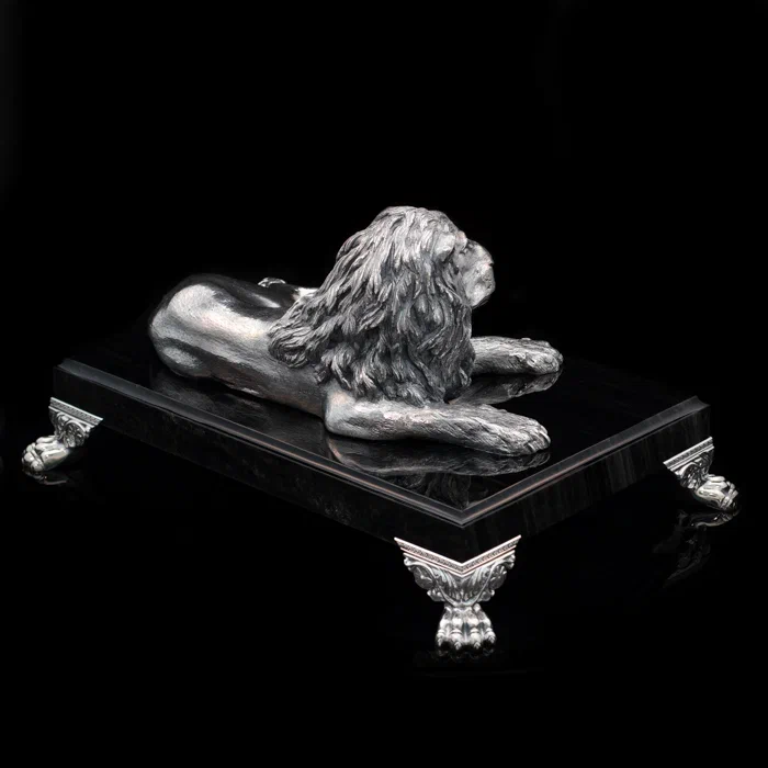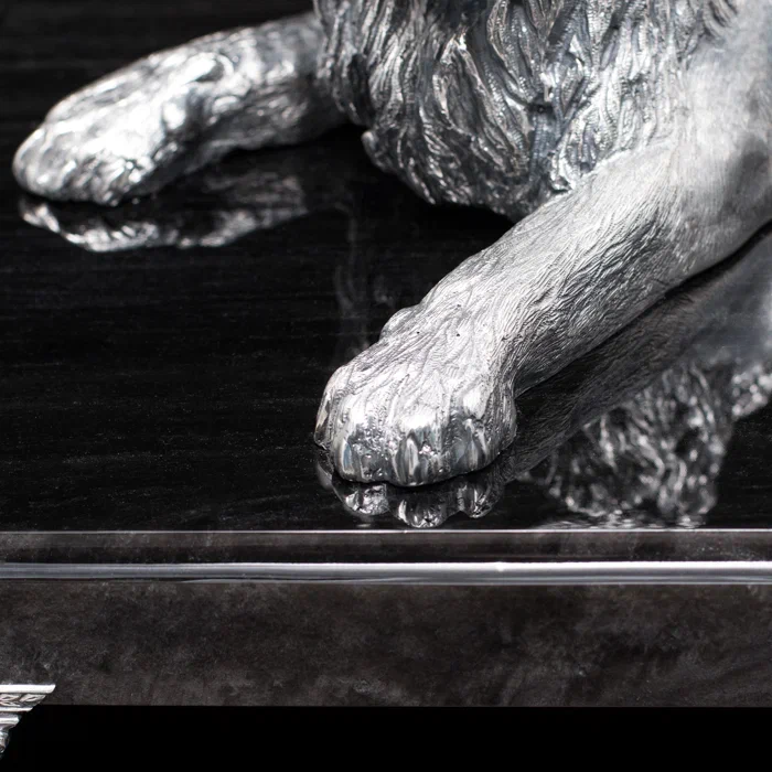 Изящная скульптура "Лев" выполнена из серебра 925 пробы в сочетании с массивнной подставкой из чёрного обсидиана.