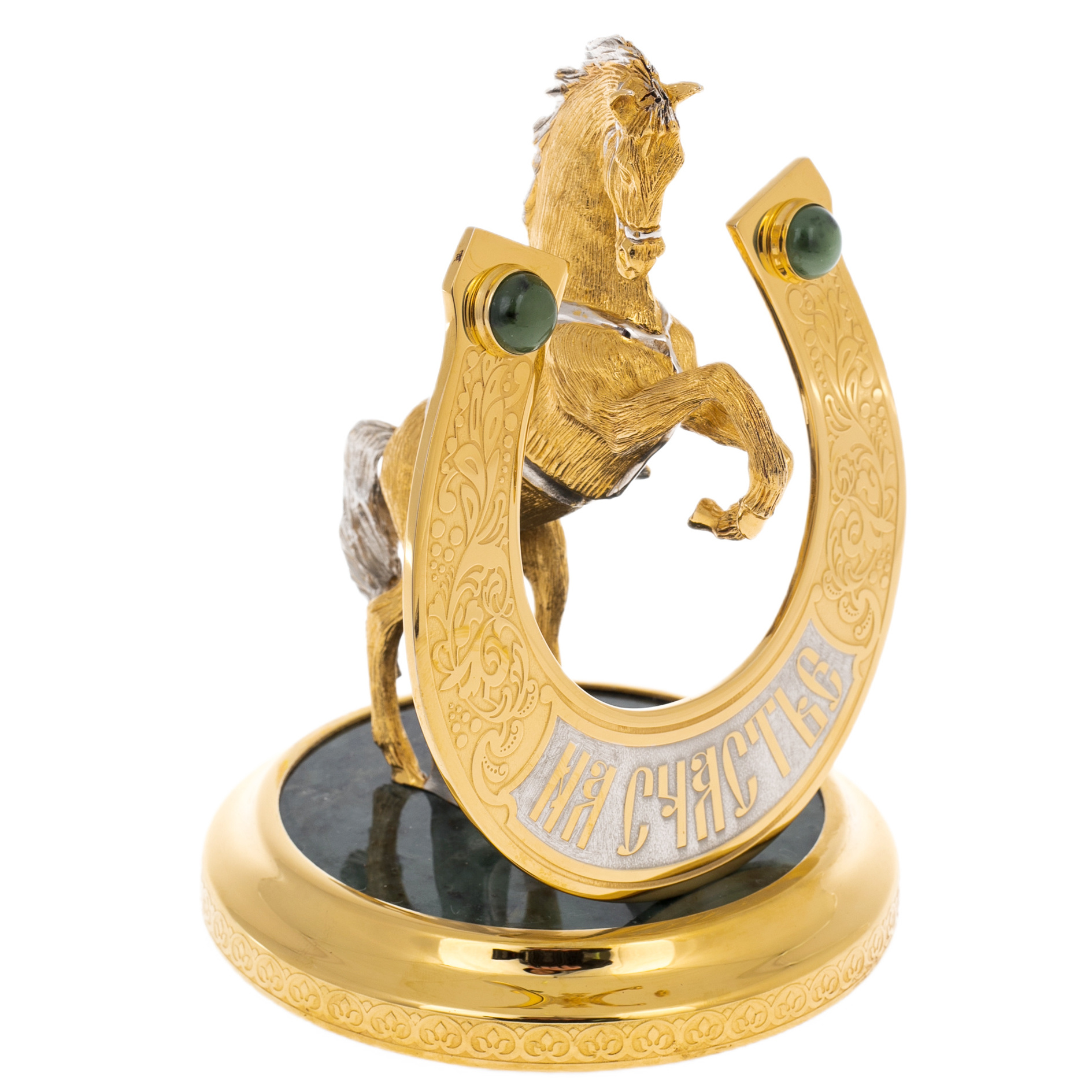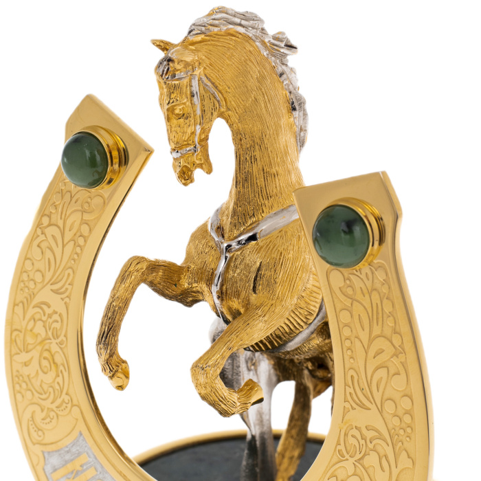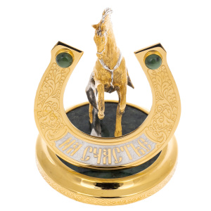 Статуэтка "Конь с подковой" на подставке из нефрита, Златоуст