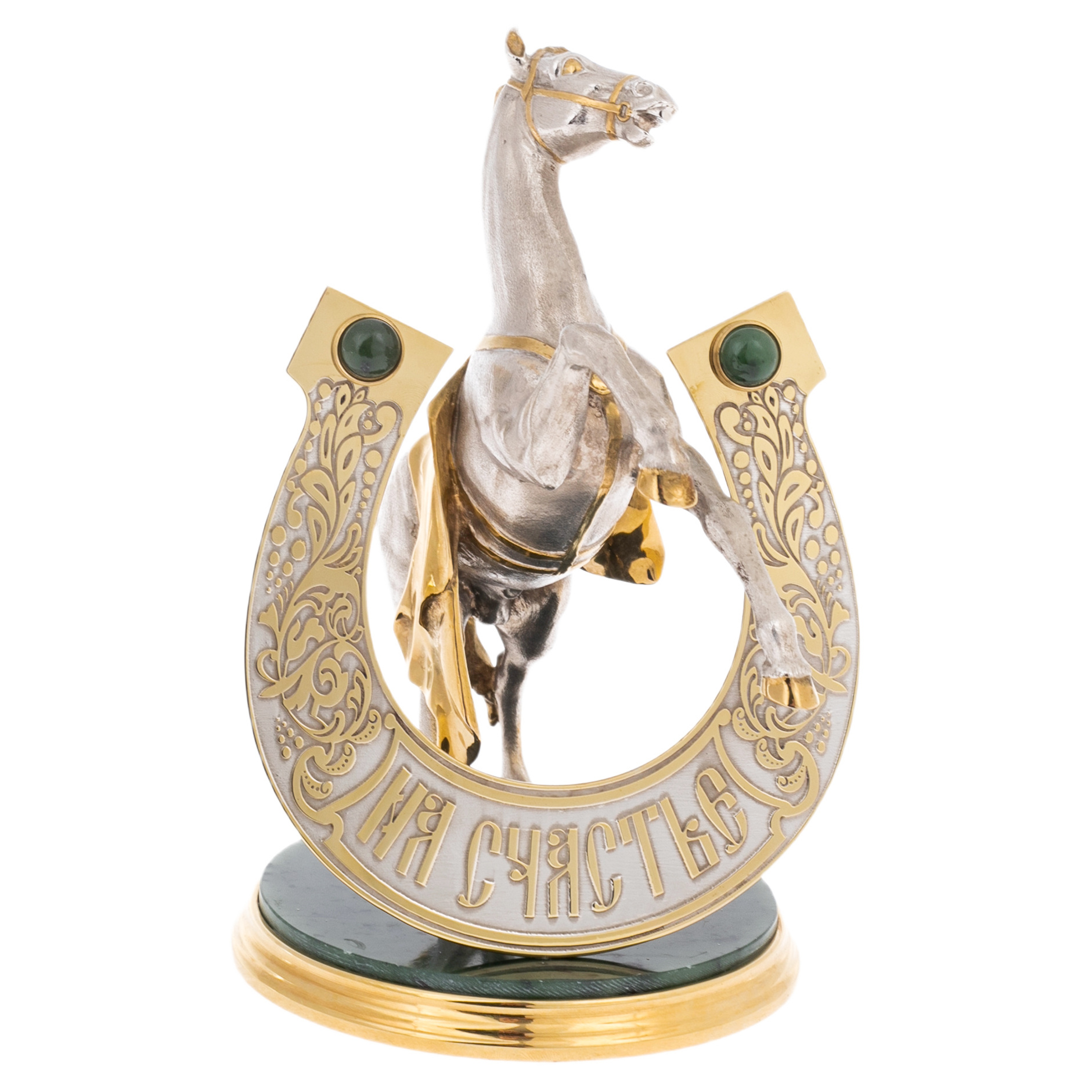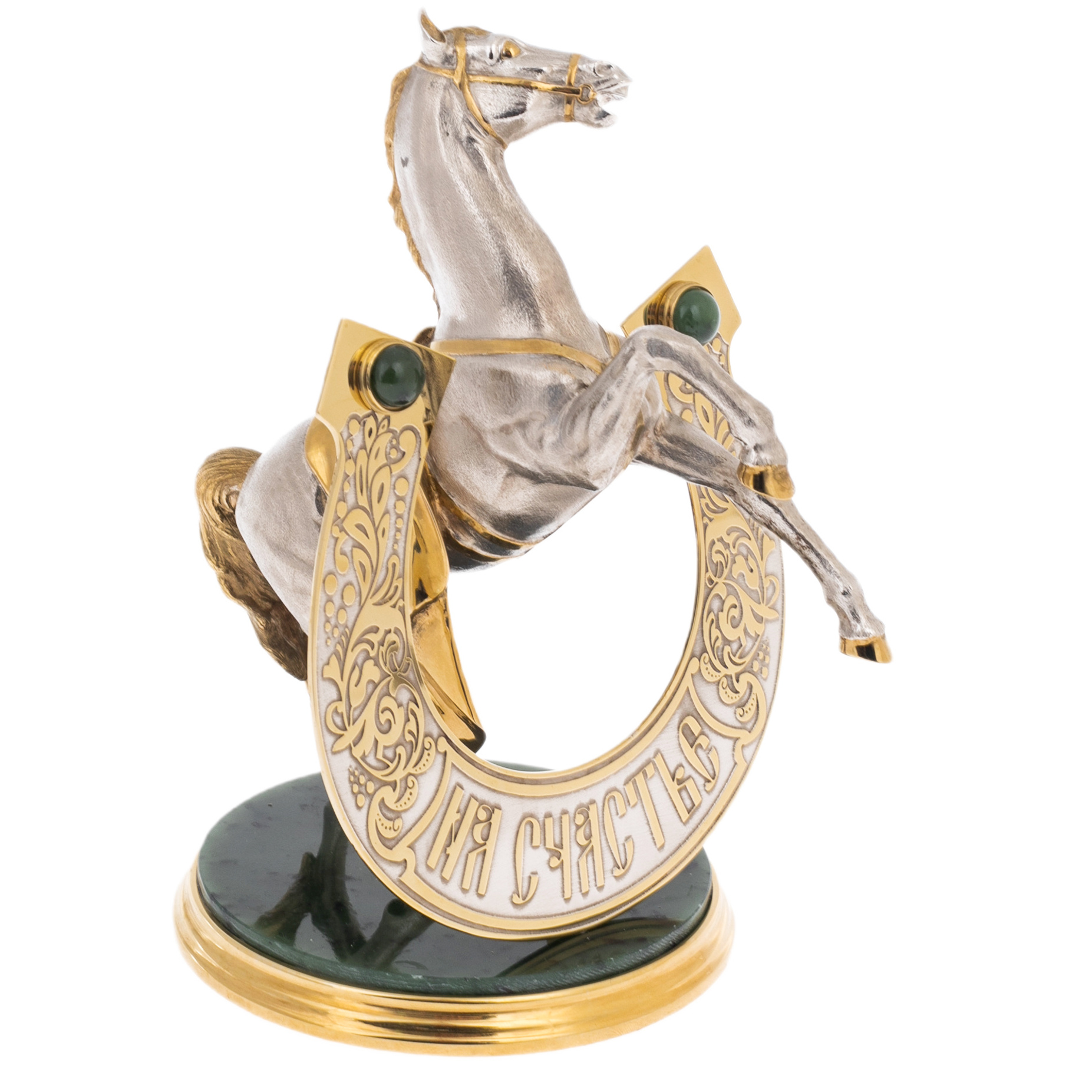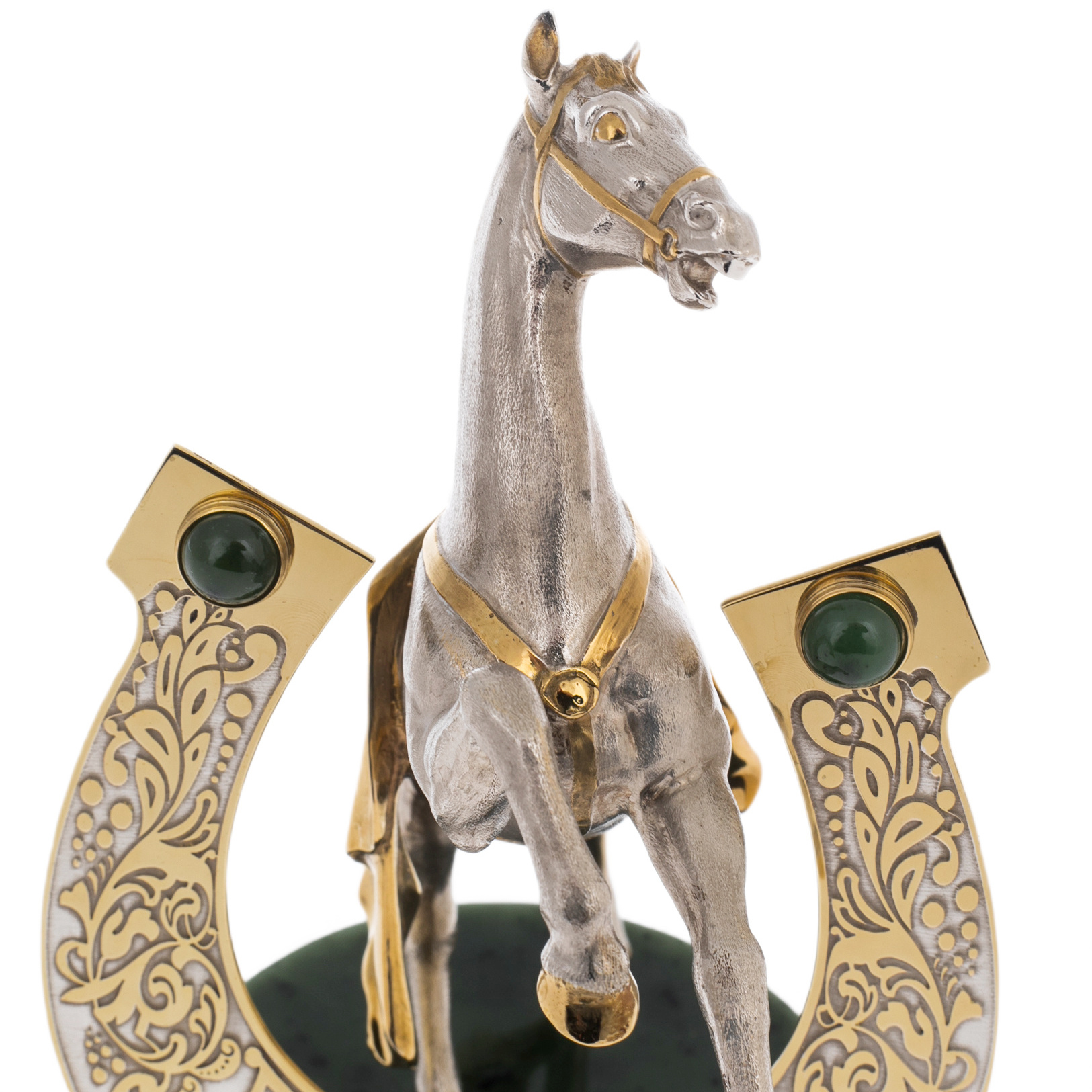 Сувенир "Лошадь с подковой. На счастье" на подставке из нефрита, Златоуст