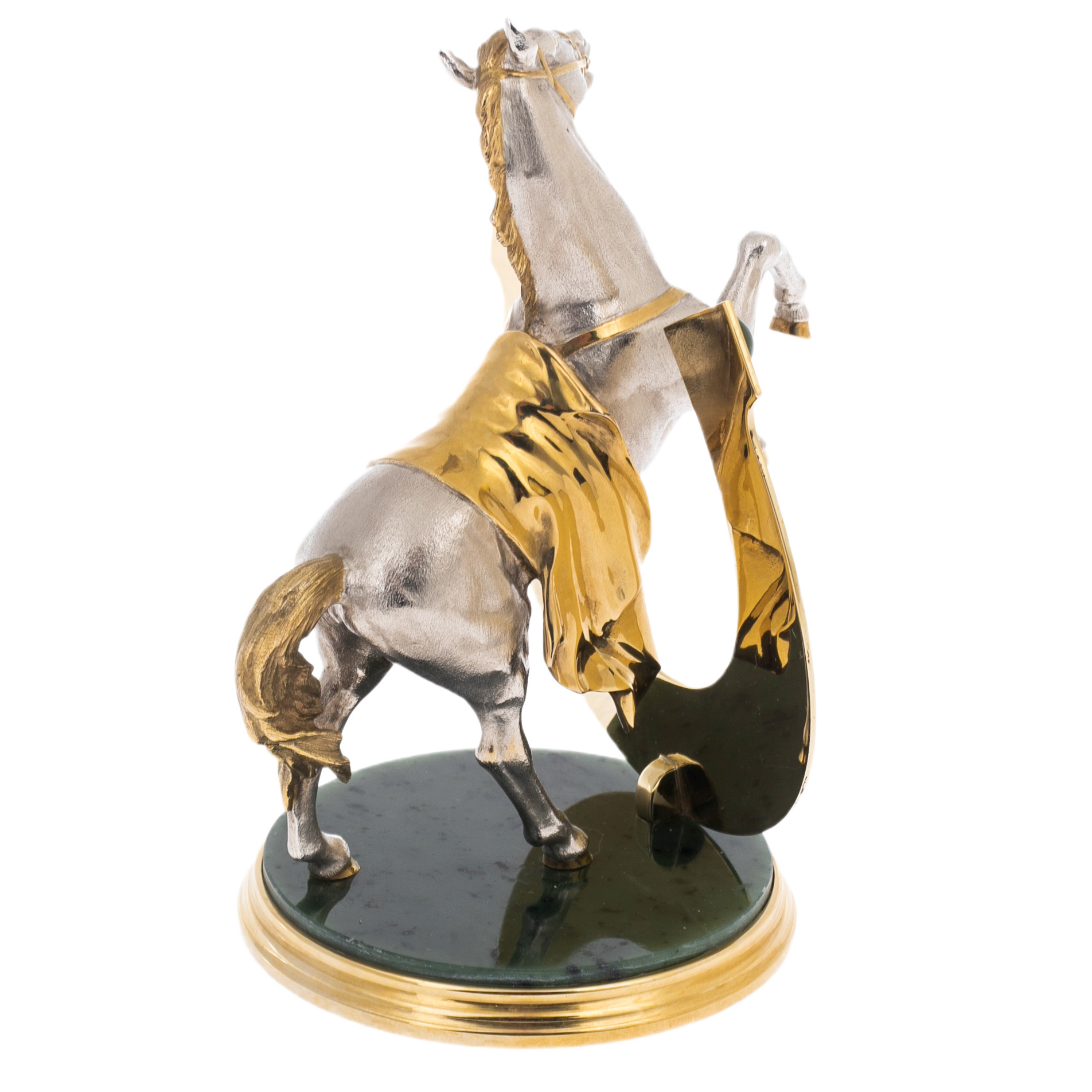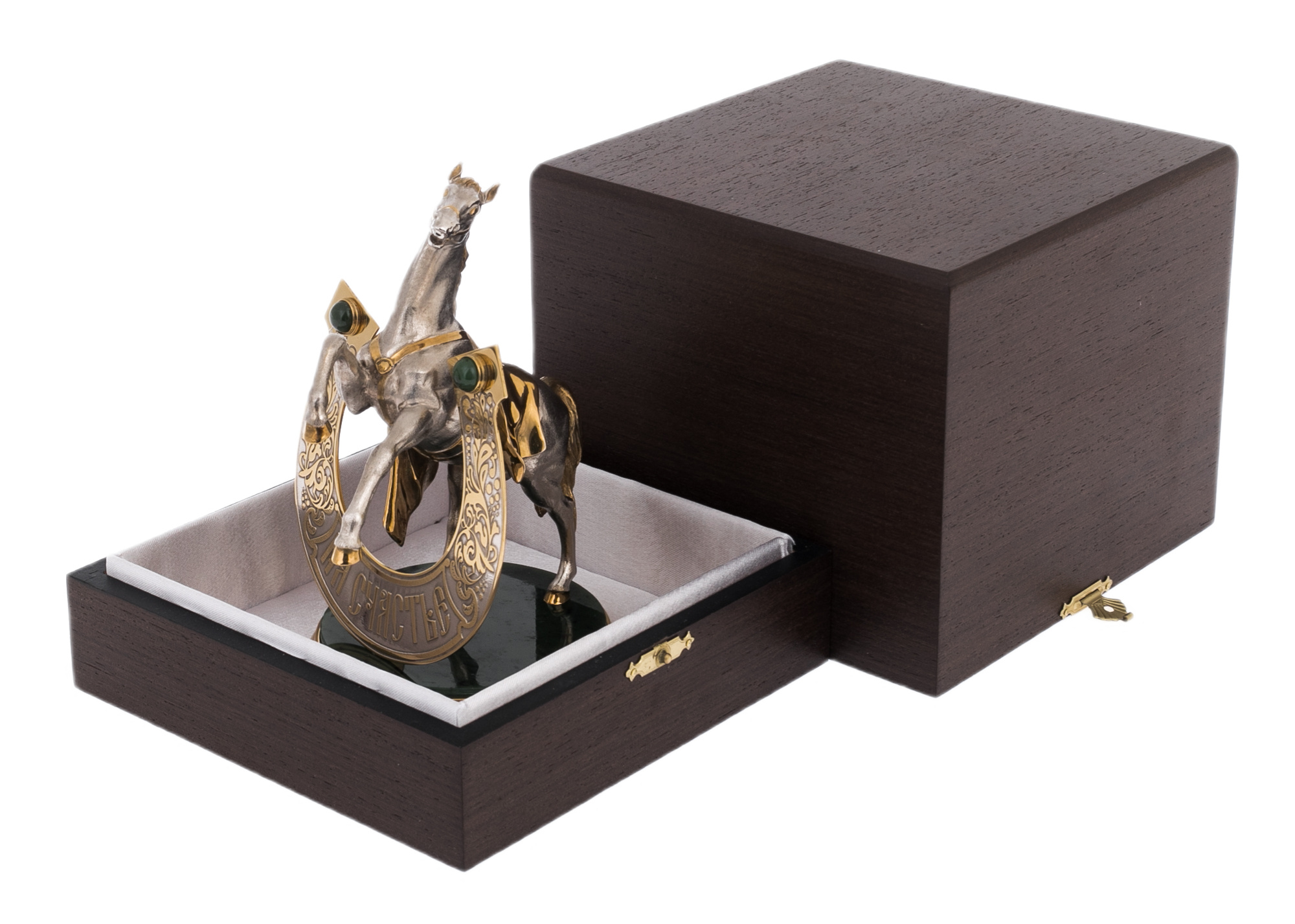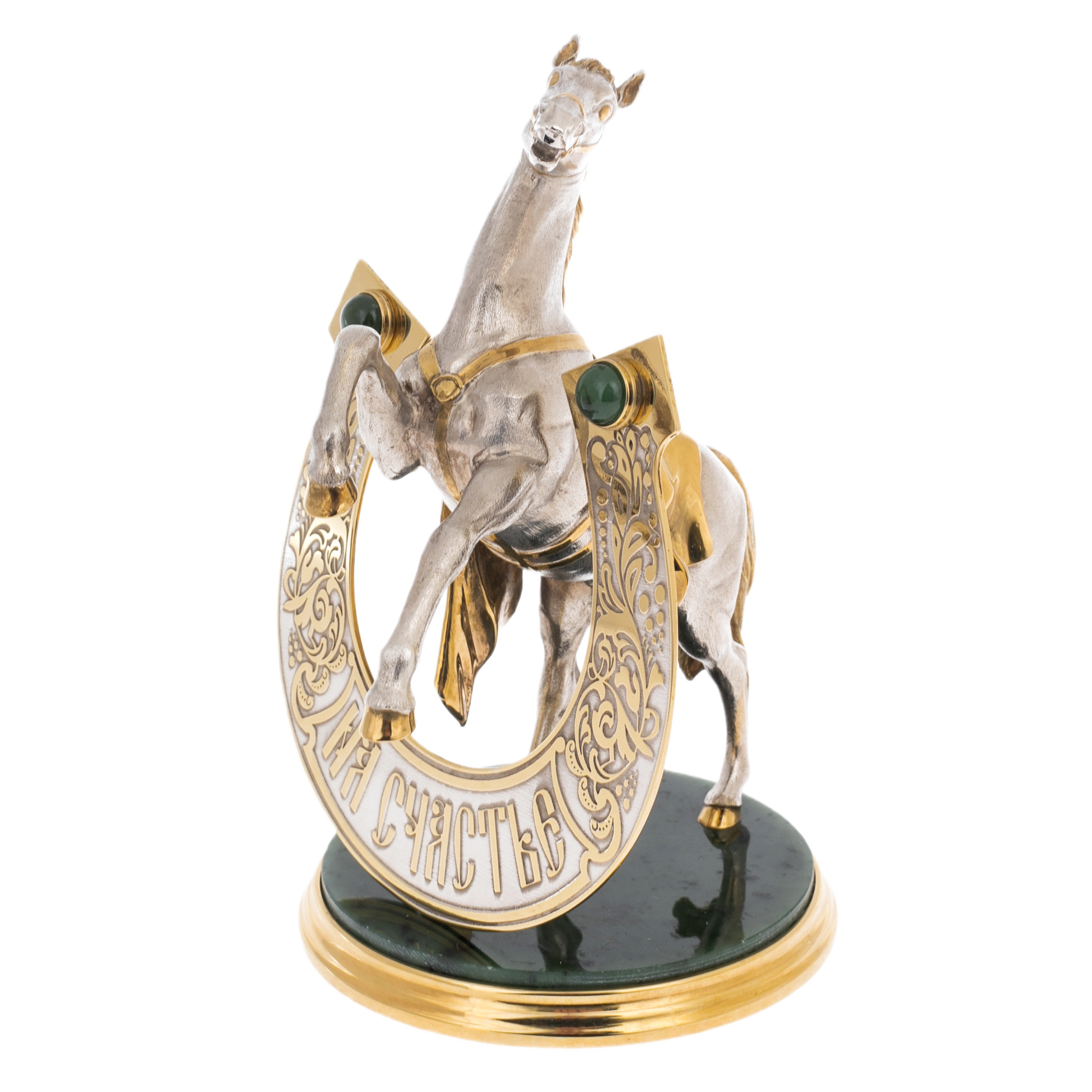 Сувенир "Лошадь с подковой. На счастье" на подставке из нефрита, Златоуст