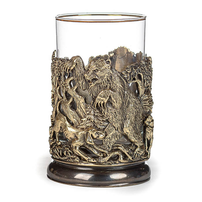 Набор подарочный "Охота на медведя" со статуэткой и 2-мя стаканами в подстаканниках