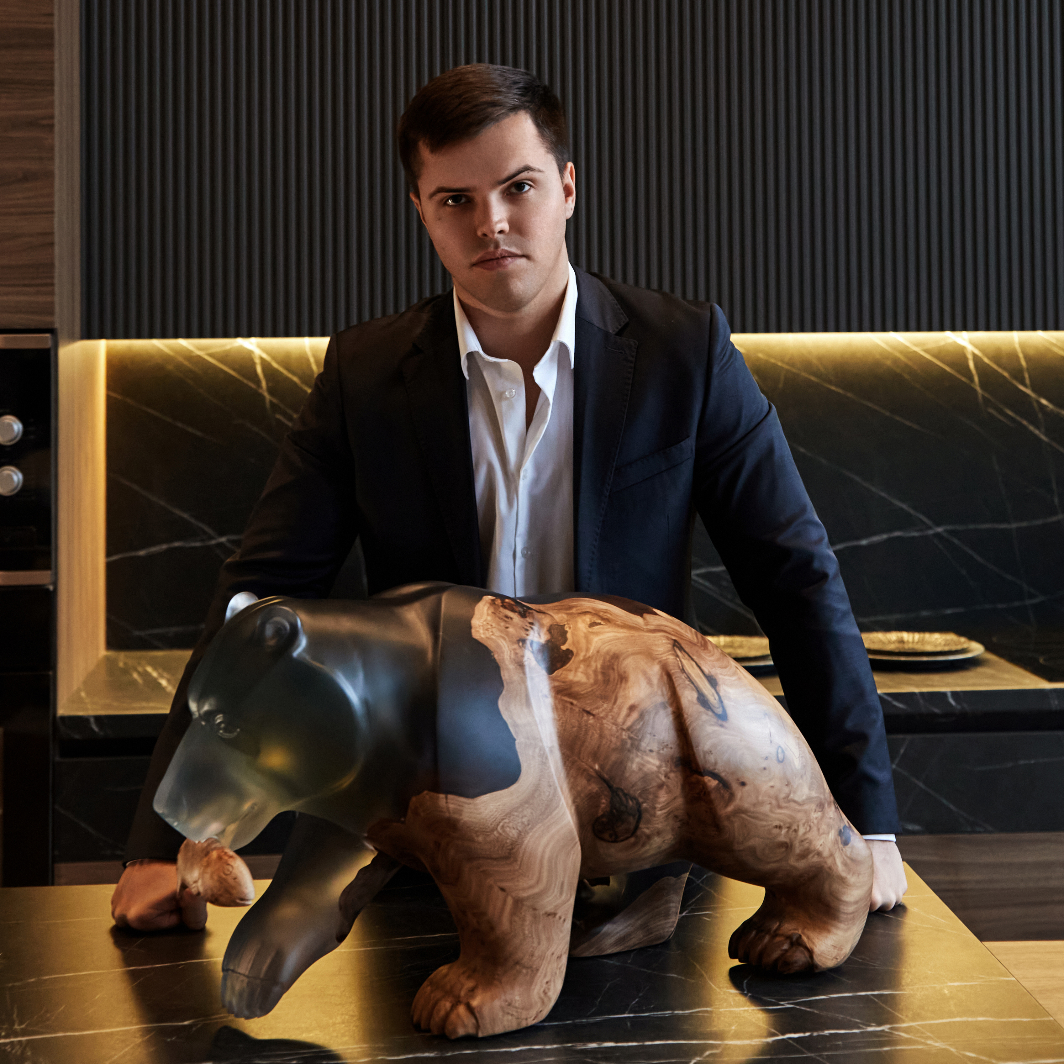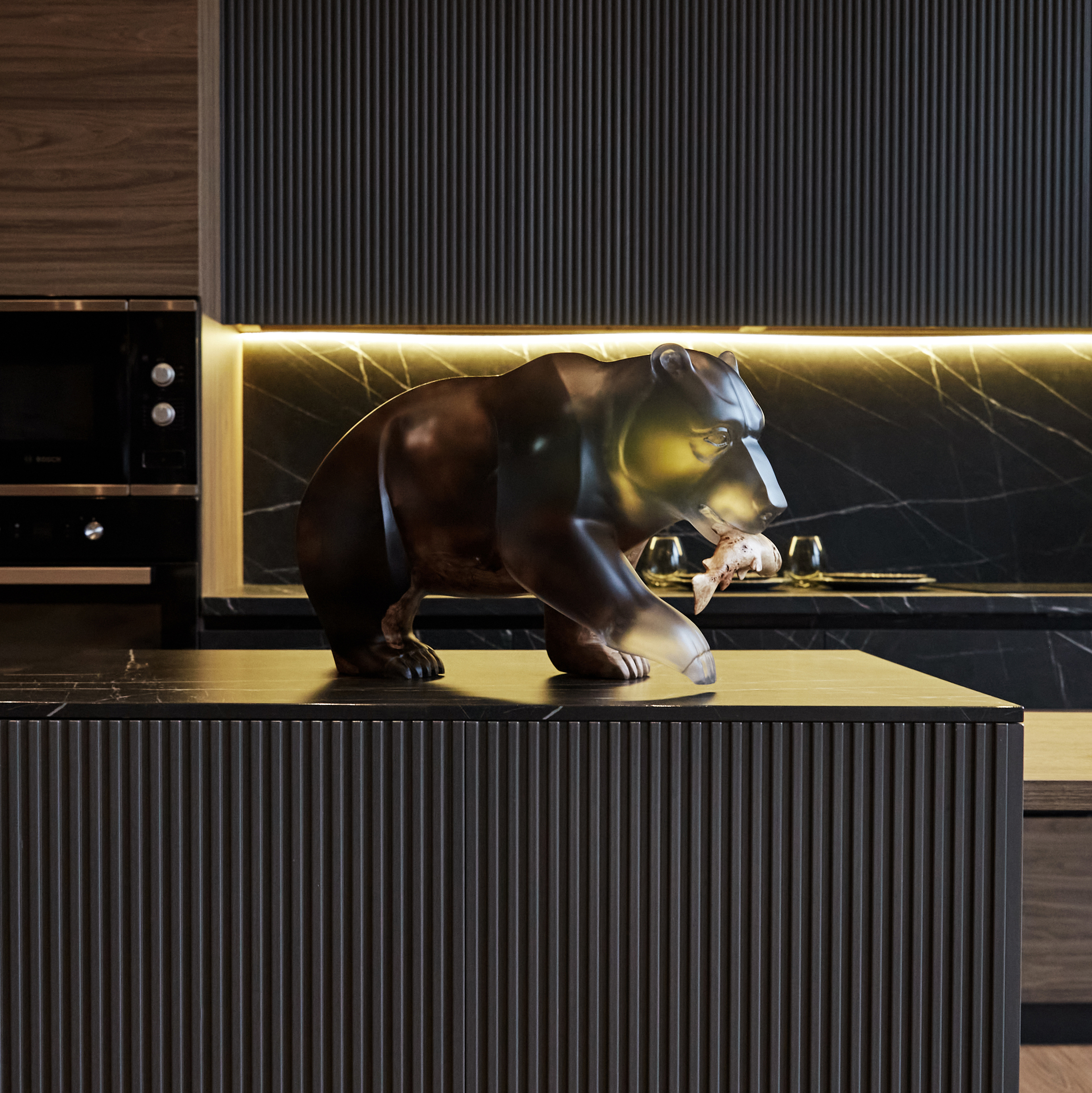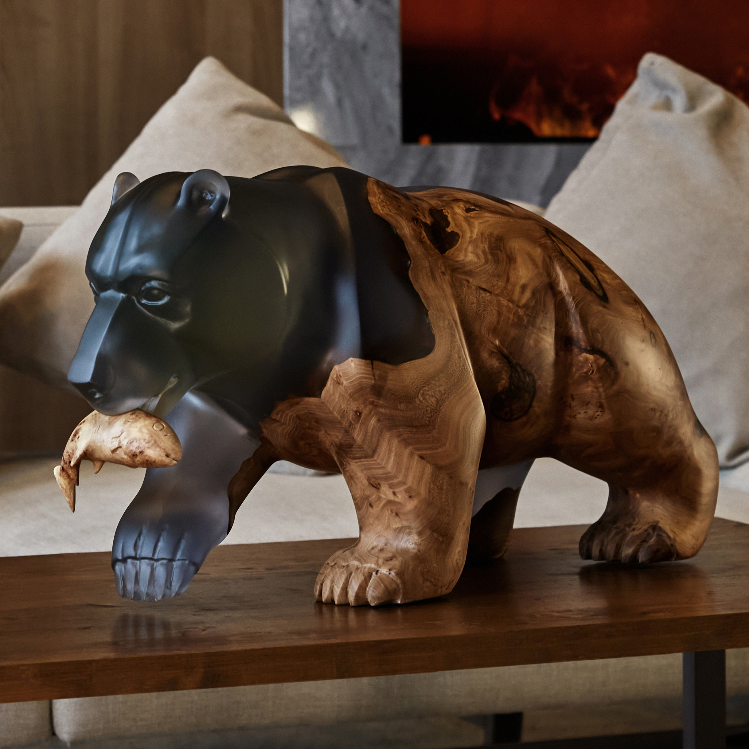 Этот арт-объект предназначен для интерьеров с характером: кабинет, каминная комната, современное арт-пространство — там, где властвует вкус и не терпятся компромиссы. Медведь из ореха и смолы — не просто элемент декора, а эмоционально заряженный центр притяжения, отражающий характер хозяина: сильного, сосредоточенного, внутренне цельного.
