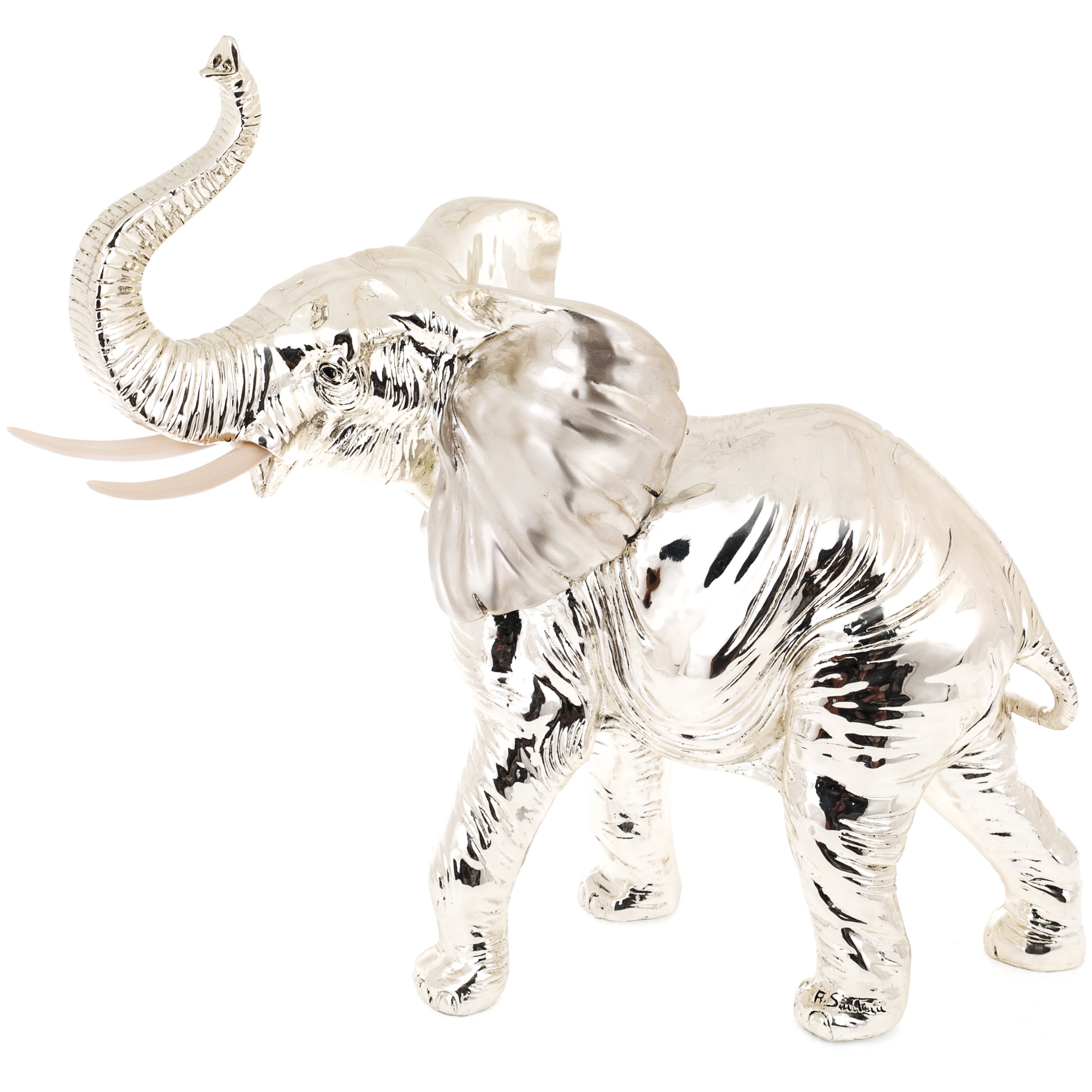 Скульптура посеребренная "Слон" с мраморной крошкой