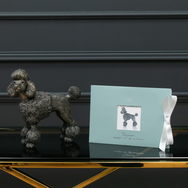 Этот пудель не просто украшение, а символ преданности и статуса, объект восхищения, достойный занять центральное место в интерьере человека, понимающего истинную ценность исключительных вещей. В серебряном блеске его шерсти – отражение времени, замершее в вечности.