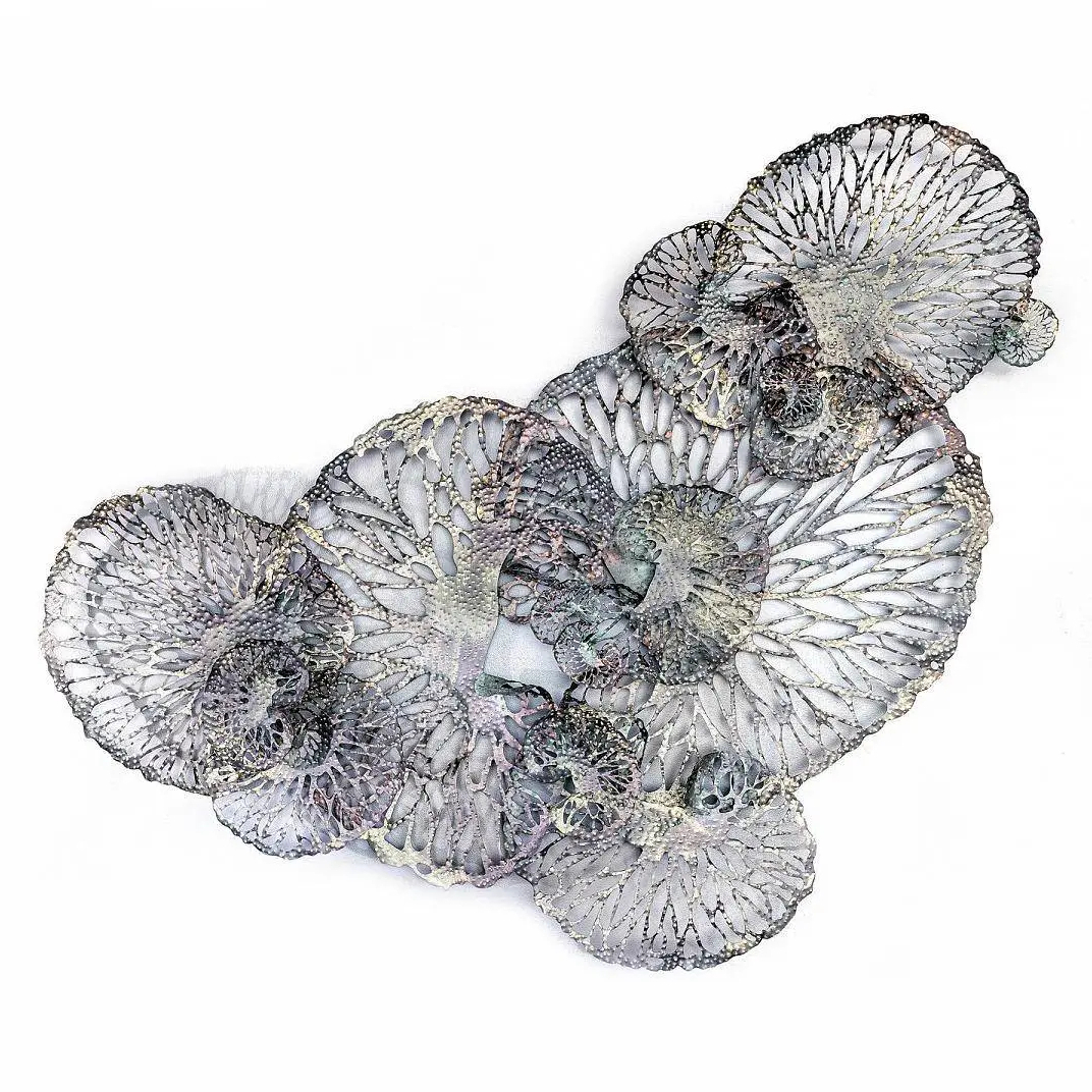 Настенная скульптура ручной работы из сатинированного металла — это застывшее дыхание глубины, элегантная аллегория на живые коралловые рифы, созданные не природой, а искусством. Металл, подчинённый воле мастера, превращён в легчайшую сеть изгибов и кружевных линий, повторяющих ритм подводных течений. Кажется, будто этот объект медленно колышется в невидимом потоке, грациозно сохраняя иллюзию движения. Его форма — воплощение зыбкости и прочности одновременно, напоминание о том, что истинная власть — это не сила, а гармония, умение управлять пространством, подчиняя его собственной воле.